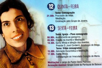 Faz amanhã 68 anos que morreu Alexandrina Maria da Costa, a popularmente conhecida “Santinha de Balasar”. Na pequena freguesia poveira são esperados milhares de devotos para participar nas celebrações que recordam a Beata. A paróquia está a assinalar a data com um vasto programa e já esta noite há procissão de velas, seguida de uma encenação pelo grupo de jovens de Balasar. Amanhã, o dia começa bem cedo com o acolhimento aos peregrinos, a partir das 8h00. A oração da manhã e meditação é às 9h00 e às 10h30 há missa solene e bênção dos doentes, cerimónias que serão presididas pelo arcebispo de Braga, D. José Cordeiro. À tarde, às 15h00, há adoração eucarística e meditação e, às 17h00, há missa e consagração ao Imaculado Coração de Maria. A animação musical estará a cargo do grupo coral de Balasar. Durante todo o dia, na Igreja, vários sacerdotes estarão disponíveis para confissão.