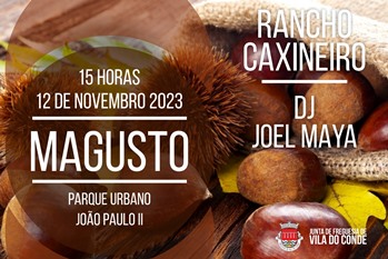 Por causa das previsões de chuva foi adiado para dia 19 de novembro, o próximo domingo, o magusto previsto para hoje no Parque João Paulo II. A festa, organizada pela junta de freguesia de Vila do Conde, começa já a tornar-se uma tradição nas Caxinas. Estava prevista a oferta de castanhas e muita animação, com o palco a ficar a cargo do Rancho Caxineiro e do DJ Joel Maya.