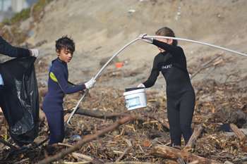 Jovens do Povoense andaram a limpar a praia em Azurara