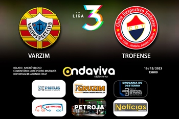 O Varzim recebe este sábado o Trofense para a 14ª jornada da Liga 3 e Vítor Paneira quer dar continuidade à exibição de Lourosa, conquistando 3 pontos que mantenham a equipa dentro do objetivo de terminar em lugares de apuramento para a fase de subida. O treinador reconhece que vai enfrentar um adversário a subir de forma, mas lembra que é obrigação do Varzim voltar às vitórias diante dos adeptos e exige empenho total do primeiro ao último minuto. O jogo começa às 15h e vai ter relato na Rádio Onda Viva com a narração de André Veloso, comentários de José Pedro Marques e reportagem de Afonso Cruz.