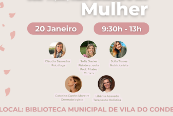 Este sábado, a partir das 9h30 e até às 12h30, a Biblioteca Municipal José Régio, em Vila do Conde, acolhe a palestra "Sou Mãe, mas continuo a ser Mulher", promovida pela Associação Cornucópia's. A organização promete uma manhã de partilha de saberes da área da psicologia, fisioterapia, nutrição, dermatologia e terapias holísticas, com um painel de oradoras que convidarão à reflexão sobre a importância da promoção do autocuidado da mãe e mulher. A entrada é livre e gratuita, mas carece de inscrição. Mais informações e inscrições podem ser pedidas através do número 968 312 368.