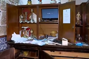 O Santuário da Nossa Senhora da Aparecida, em Balugães, no concelho de Barcelos, foi assaltado na madrugada de ontem. Os ladrões levaram 500 euros em dinheiro, um missal e as chaves do sacrário. Comeram hóstias, beberam vinho de missa e deixaram um rasto de destruição. Tudo aconteceu às 3h15, hora a que a luz foi cortada no quadro elétrico. Os ladrões arrombaram uma janela, por onde acabaram por entrar na sacristia. Depois, encontraram um envelope com 500 euros em dinheiro, proveniente das esmolas dos fiéis, que levaram. Mas o estranho no caso foi a destruição que causaram: tiraram a coroa da imagem de Nossa Senhora, que apesar do seu valor, não levaram; deixaram para trás vários objetos de arte sacra valiosos; derramaram a água benta e espalharam tudo que eram papéis e livros. Causaram ainda danos na capela e na casa mortuária. Os prejuízos estão ainda por avaliar. A GNR de Barcelos e o Núcleo de Investigação Criminal de Braga estão a investigar o caso.
