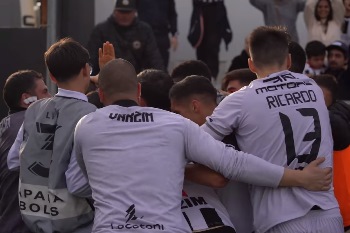 Jogadores felizes pelo objetivo que alegrou os adeptos varzinistas