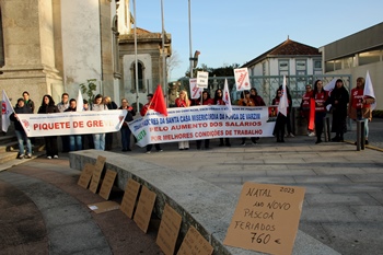 Funcionários manifestaram-se à porta da Santa Casa