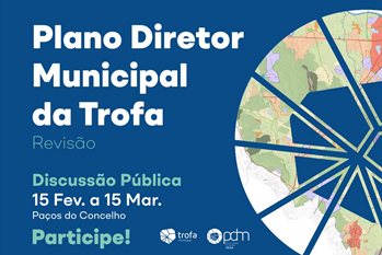 Começa amanhã, dia 15, a discussão pública da 1.ª revisão do Plano Diretor Municipal (PDM) da Trofa. De forma a facilitar o acesso e participação de todos os interessados, a Câmara vai disponibilizar toda a informação no portal municipal e vai criar, no edifício dos paços do concelho, um posto presencial de atendimento ao público e uma zona de exposição com destaque para os mapas do PDM. Os interessados poderão apresentar os seus comentários, observações e sugestões sobre quaisquer questões que possam ser consideradas no âmbito do respetivo processo de revisão. O período de discussão pública vai decorrer até 15 de março.