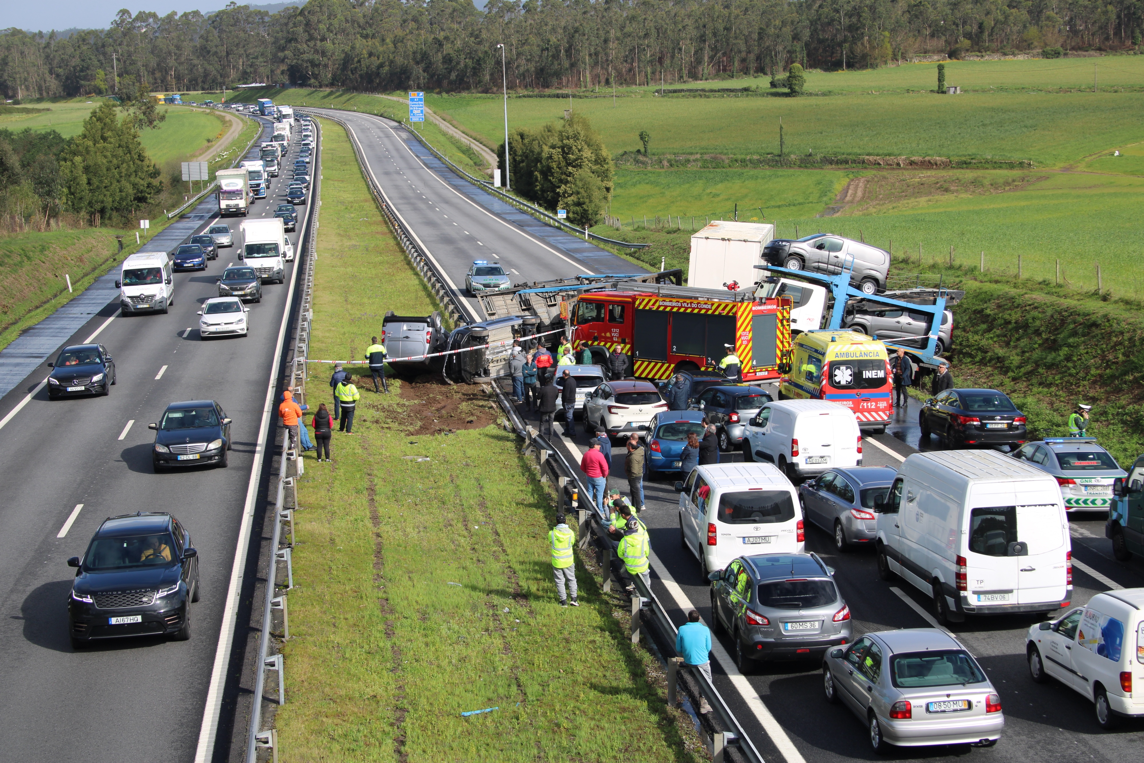 Um camião que transportava carros tombou e os carros que transportava estão, agora, espalhados pela via. O acidente cortou o trânsito na A28. O alerta foi dado às 7h15. No local, estão os Bombeiros Voluntários de Vila o Conde, a GNR e a concessionária Autoestradas do Litoral.