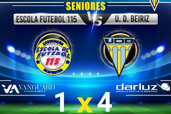 O Beiriz, na II Divisão, goleou no campo da Escola 115, por 4x1, em desafio da jornada 27. A formação orientada por Filipe Alves manteve a liderança isolada da série 2 e contabiliza agora 62 pontos. Os beirizenses recebem o Leões da Seroa na próxima ronda.