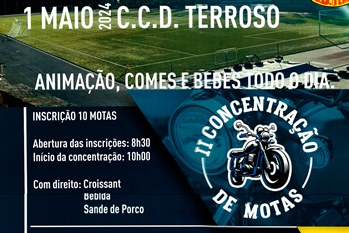 Neste 1 de maio, feriado nacional, o Centro Cultural e Desportivo de Terroso organiza, nas suas instalações, mais uma edição do “Dia no Campo”. O evento tem como ponto alto uma concentração de motos a meio da manhã, estando garantida a animação e os tradicionais comes e bebes durante todo o dia. Os interessados em inscrever-se terão de pagar 10 euros à entrada, tendo direito a croissant, bebida e sande de carne de porco. Haverá vários jogos tradicionais, como malha, argolas, prego, tiro ao alvo, sapo, bola ao meco, tração da corda, corrida de sacos e estão prometidos bons prémios.