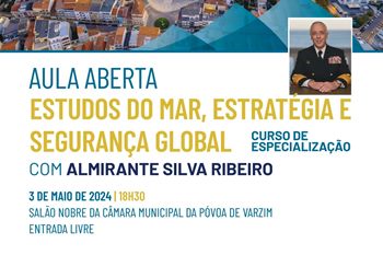 Esta sexta, às 18h30, o Salão Nobre dos Paços do Concelho acolhe a primeira e única aula aberta no País em Especialização em Estudos do Mar, Estratégia e Segurança Global. A sessão irá contar com a presença do Presidente da Câmara Municipal da Póvoa de Varzim, Aires Pereira, e será ministrada pelo Almirante Silva Ribeiro, distinguido em 2018 como Cidadão Poveiro. Recorde-se que, no momento de despedida das suas funções como Chefe de Estado-Maior-General das Forças Armadas, o militar decidiu doar o uniforme ao Município da Póvoa de Varzim. A entrada é livre e haverá um momento dedicado a perguntas e respostas, aberto a todos os interessados em participar.