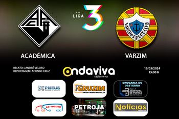 O Varzim visita este domingo a Académica no jogo de encerramento da temporada na Liga3. O treinador Vítor Paneira assegurou na conferência de imprensa de antevisão que o plantel quer fechar com uma vitória e concluir bem uma época que ficou abaixo das expetativas. A partida em Coimbra será de oportunidades para mais jovens varzinistas, sendo certo o lançamento do ainda júnior Miguel Vila Cova. O relato está garantido na Onda Viva com narração do André Veloso e reportagem do Afonso Cruz.