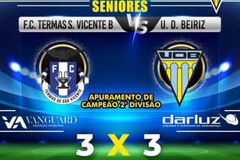 A equipa da União Desportiva de Beiriz somou o primeiro ponto na fase de apuramento de campeão da Segunda Divisão da Associação de Futebol do Porto. Os beirizenses foram empatar a três bolas ao campo do Termas São Vicente B na segunda jornada da prova. Diogo Marques (68') e Tomas Vaz (74' e 83') foram os autores dos golos, sempre em reação aos tentos do adversário Os pupilos de Filipe Alves terão agora uma difícil deslocação a deslocação a Freamunde na tarde do próximo domingo. O Beiriz tem já assegurada a promoção à 1ª Divisão, mas pode ir diretamente para a Divisão de Honra se terminar nos dois primeiro lugares.