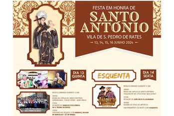 A Festa em Honra de Santo António chega esta quinta-feira a São Pedro de Rates. Neste primeiro dia de comemorações, a freguesia poveira apostou na música, sem esquecer de satisfazer o lado gastronómico da população. Pelas 20h, há uma missa na capela de Santo António, seguindo-se uma sardinhada, que promete bom vinho e o tradicional caldo verde. Do lado musical, o Rancho Folclórico de Rates atua pelas 21h30 e uma hora depois do bailarico começar, chegam os Cantares de Desafio, à voz de Anjinho, Aguiar de Barcelos e Zé Braga. Amanhã, sexta-feira, a primeira etapa do programa repete-se, com uma missa ao início da noite, seguida de bar a funcionar para jantar. Pela noite dentro, João Neto & Leonardo dão um concerto ao estilo sertanejo, até à sessão de fogo de artifício, que ocorre à meia noite. Depois disso, a noite encerra com "Esquenta".
