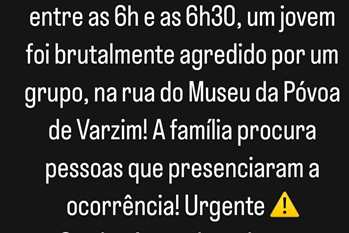 Um jovem foi brutalmente agredido no final da segunda noitada de S. Pedro, na Póvoa de Varzim. A família de Rui Pedro, de 22 anos, lançou um apelo nas redes sociais a pedir ajuda a eventuais testemunhas do que se passou. Já foi apresentada queixa-crime e o objetivo é que seja feita justiça, ajudando a polícia a chegar aos autores da violenta agressão. O rapaz ficou internado no Hospital de S. João, no Porto, a recuperar de um traumatismo crânio-encefálico e de múltiplas fraturas nos ossos da face.