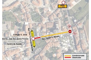 A partir desta segunda-feira há condicionamentos de trânsito rodoviário em Vila do Conde devido à obra de requalificação e melhoria de segurança no cruzamento dos arruamentos Rua Dr. António José Sousa, Rua Conde D. Mendo e Rua Comendador António Fernandes da Costa. Nesta segunda fase não será possível transitar para a Rua Conde D. Mendo, a partir do cruzamento mencionado, enquanto a Rua Dr. António José Sousa Pereira ficará aberta à circulação. A autarquia apela à compreensão pelo incómodo causado e promete ser breve na empreitada.