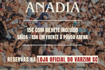 O Varzim estreia-se no próximo sábado em mais uma edição da Liga 3. O arranque será em Anadia numa partida que começa às 16h e o clube está a tentar mobilizar um forte apoio varzinista. “Agora não tens desculpa para ficar de fora! Reserva o teu lugar na nossa Loja oficial”, expressaram os responsáveis alvinegros numa publicação em que revelam a possibilidade de comprar viagem e bilhete para o jogo por 15 euros, sendo a saída do autocarro às 13h em frente ao Póvoa Arena. É alertado que, “em caso de reservas superiores aos lugares disponíveis, será dada preferência aos sócios”. Na mesma informação é acrescentado que os ingressos sem viagem incluída estarão à venda no recinto em Anadia e custarão 5 euros. Segundo esclareceu o Varzim, foram disponibilizados 900 bilhetes para os público afeto aos lobos do mar.