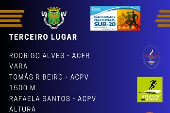 O Atlético teve dois jovens no pódio dos Campeonatos Nacionais de sub 20 que decorreram em Viana do Castelo. Tomás Ribeiro, nos 1500 metros, e Rafaela Santos, no salto em altura, alcançaram a medalha referente ao terceiro lugar. Coletivamente, o clube poveiro conseguiu ser quinto em masculinos, sendo a melhor formação da Associação de Atletismo do Porto.