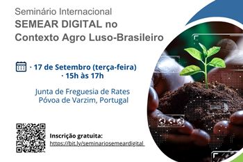 Esta terça-feira, das 15h às 17h, a Junta de Freguesia de Rates, na Póvoa de Varzim, será o palco do Seminário Internacional “SEMEAR DIGITAL no Contexto do Agro Luso-Brasileiro”. Este seminário vai abordar os desafios enfrentados pela Agricultura Digital nas pequenas e médias explorações agrícolas, discutindo temas como inteligência artificial, agricultura 5.0, agricultura de precisão, robótica, monitorização do trabalhador agrícola e internet das coisas. Organizado pela Associação Mobilizar com Valores (McV), o evento conta com a participação de Ivan Bergier, da Embrapa Agricultura Digital, e de especialistas do Instituto de Engenharia de Sistemas e Computadores, Tecnologia e Ciência (INESC TEC) e da Casa Escola Agrícola Campo Verde (CEACV), ambos do distrito do Porto. O seminário visa fortalecer a articulação internacional para o desenvolvimento de projetos de Agricultura Digital em pequenas e médias propriedades no Brasil e em Portugal, além de contribuir para a profissionalização e fixação de jovens no interior do país.