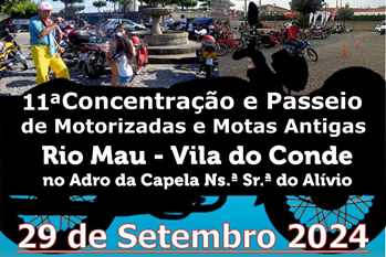 Rio Mau é palco, este domingo, da 11ª Concentração e Passeio de Motorizadas e Motas Antigas que se realiza no adro da Capela de Nossa Senhora do Alívio. A concentração começa às 8h com a receção aos motards e o secretariado, seguido pelo início do passeio às 9h. Às 10h30, está marcada a “hora da bucha”. A chegada do passeio está prevista para o meio-dia, seguido de um almoço, onde será servido vitelão na brasa. A tarde inclui entretenimento motard, com a Gincana Super Especial e a Prova dos Lentos a decorrerem às 15h. A entrega de troféus está agendada para as 17h30, e o evento será encerrado às 19h. A organização é do Clube dos Amigos das Fumarentas Antigas e da Comissão de Festas da Senhora do Alívio. A inscrição com almoço custa 22,50 euros e sem almoço 12,50 euros.