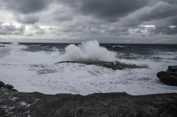 Alerta amarelo por causa da chuva forte e ondas de 5 metros