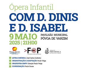 Esta sexta-feira, o 20º Fórum Formação e Opções Profissionais da Póvoa de Varzim apresenta a Ópera Infantil “Com D. Dinis e D. Isabel”, pelas 21h, no Pavilhão Municipal. A peça será interpretada por alunos dos 3º e 4º anos do 1º Ciclo dos agrupamentos de escolas locais e do MAPADI, com música original de José Carlos Godinho e orquestração de Paulo Veiga. O espetáculo é conduzido pela Orquestra da Escola de Música da Póvoa de Varzim e conta ainda com representação por alunos da disciplina de Classe de Conjunto do 1.º grau da EMPV. Já no sábado, vai decorrer um debate pensado para os jovens em fase de decisão académica. O tema é o acesso ao ensino superior, com o Debate Fórum - “O Restaurante dos Cursos chamado Ensino Superior: Como Escolher?”, a partir das 15h, no auditório da Biblioteca Municipal Rocha Peixoto. O orador convidado é Rafael Vieira, autor do Podcast Universitário, que tem apoiado milhares de jovens na escolha do percurso académico e na entrada no mercado de trabalho. As inscrições para o debate são gratuitas, mas obrigatórias, e devem ser feitas por e-mail para Este endereço de email está protegido contra piratas. Necessita ativar o JavaScript para o visualizar.. Ambas as iniciativas estão inseridas no 20º FOP – Fórum Formação e Opções Profissionais, promovido pela autarquia, e que decorre até ao dia 16 de maio.