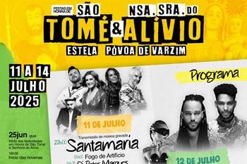 Já arrancaram as Festas em Honra de São Tomé e Nossa Senhora do Alívio, na freguesia da Estela. O programa estende-se até segunda-feira, com entrada gratuita e muitas propostas para todos os gostos. Esta sexta-feira à noite, os Santamaria sobem ao palco às 22h, seguindo-se o fogo de artifício à meia-noite e animação com o DJ Peter Marques e o espetáculo The Drums Show. Amanhã, sábado, o dia começa com os Zés Pereiras de Barcelinhos a percorrer as ruas, pelas 8h. À noite há atuações dos grupos de dança da freguesia e, pelas 22h, concerto dos Calema. Depois do fogo de artifício, a animação continua com a DJ Mari Ferrari. No domingo, a alvorada está marcada para as 7h30, e às 10h realiza-se a eucaristia solene. Durante a tarde, pelas 15h30, há romagem ao cemitério, e, meia hora depois, acontece a tradicional procissão com andores e figurados, acompanhados por três parelhas de cavaleiros, a Banda de Música de Arnoso e a fanfarra dos Escuteiros da Matriz. À noite, o destaque vai para o concerto do Maninho às 22h e novo fogo de artifício, seguido da DJ Sara Santini. As festas encerram na segunda-feira com música durante toda a tarde: às 15h30 atua o grupo Com Tradição, depois há cantares ao desafio com Anjinho, Aguiar, Zé Braga e Gonçalo Moreira e, às 18h, os Marotos da Concertina. O sorteio das rifas está marcado para as 20h.