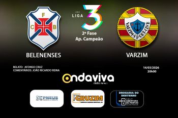 O Varzim joga esta noite no terreno do Belenenses para a 6ª jornada da fase de apuramento de campeão da Liga3. Os varzinistas estão praticamente forçados a vencer para não deixarem fugir a concorrência na luta pela subida. Depois de dois desaires consecutivos, os alvinegros querem continuar a sonhar e Nuno Capucho reitera que a equipa terá de ter uma postura de grande intensidade e definir bem os lances de ataque para aspirar ao triunfo. O técnico acredita nos pupilos e espera poder dar uma alegria aos adeptos que irão marcar presença em Lisboa e nunca deixam de apoiar o clube. O desafio está agendado para as 20h e o relato está garantido na Rádio Onda Viva.