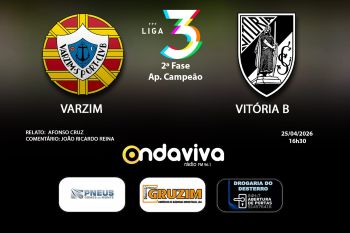 O Varzim recebe esta tarde (16h30) o Vitória B para a 11ª jornada da fase de apuramento de campeão da Liga 3. Os varzinistas vão procurar vencer os jovens vitorianos para darem continuidade ao último triunfo alcançado na Trofa. Com o clube a ter ainda uma ténue esperança de lutar pela subida, Nuno Capucho quer um Varzim a jogar com atitude e concentração frente a um adversário que fez mossa na primeira volta. O treinador alvinegro admite que esse jogo em Guimarães foi o pior desde que regressou à Póvoa e provocou uma má fase na equipa, mas agora ambiciona retificar com uma vitória caseira que permita continuar a sonhar. De fora das opções continuam os lesionados Álvaro Milhazes, Joãozinho, Miguel Vila Cova e Zé Manuel.