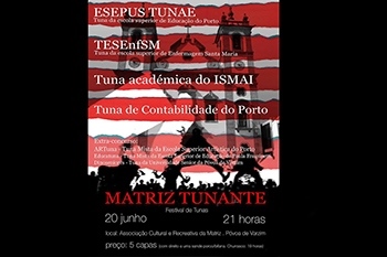 A Paróquia da Matriz continua a angariar fundos para amortizar a dívida contraída para a compra do Colégio do Sagrado Coração de Jesus e marcou para a noite deste sábado, na Associação Cultural e Recreativa da Matriz, um festival de tunas que vai começar às nove da noite. Participam grupos da Escola Superior de Educação do Porto, da Escola Superior de Enfermagem Santa Mónica, do Instituto Superior da Maia, e de Contabilidade do Porto.Estas tunas vão a concurso, mas fora da competição o serão contempla a atuação da ARTuna - Tuna Mista da Escola Superior Artística do Porto, da Educatuba - Tuna Mista da Escola Superior de Educação de Paula Frassinetti e da Dinoseniores -, a Tuna da Universidade Sénior da Póvoa de Varzim. Os ingressos estão à venda no Cartório da Paróquia e custam cinco euros.