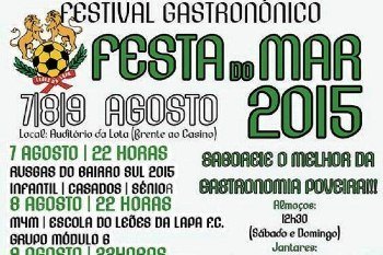 A partir desta sexta-feira e até domingo, o Leões da Lapa organiza no auditório da lota a Festa do Mar. Há uma componente gastronómica tradicional, com refeições ao jantar e ao almoço. Não faltará também animação musical e hoje, às 22 horas, atuam as rusgas infantil, casados e sénior que saíram nas festas de S. Pedro deste ano. Amanhã o recinto fica por conta do grupo M4M da escola do Leões da Lapa e também da banda Módulo 6. No domingo, a noite fica com o folclore de Vila do Conde e também do rancho anfitrião, o Tricanas da Lapa.