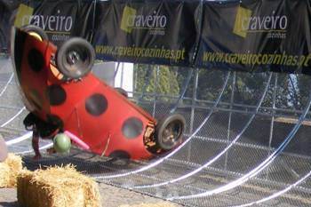 Terminou em tragédia a 7.ª edição do Laundos em Movimento. O humorista Miguel 7 Estacas está em estado grave, com prognóstico reservado, depois de, ontem, ao final da tarde, se ter despistado a descer o Monte de S. Félix, na última curva da pista, junto ao Terreiro da Senhora da Saúde. O padre Guilherme Peixoto, o responsável pelo evento, explica como tudo aconteceu. O humorista seguia num carro com João Seabra, o comediante e, este ano, padrinho do Laundos em Movimento, quando a “Joaninha” (na foto) virou. João Seabra saiu ileso, “7 Estacas” está a ser operado e o seu estado é grave. O padre Guilherme Peixoto, ainda em choque com a forma trágica como acabou o evento, explica que a curva, onde João e Miguel se despistaram, foi, justamente este ano, reforçada com uma estrutura metálica, a fim de evitar acidentes com público e pilotos. Miguel 7 Estacas veio a Laundos de surpresa com o amigo João Seabra e não quis deixar de experimentar a descida mais louca do mundo. Depois do segunda acidente do dia – o primeiro havia sido no início da prova com um fotógrafo que ficou ferido, embora sem gravidade, ao ser abalroado por um carro durante a descida – a prova, explica o padre Guilherme Peixoto, foi interrompida.