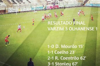 O Varzim regressou esta quarta-feira às vitórias na Segunda Liga. Os alvinegros receberam e venceram o Olhanense por 3x1 em partida da sétima jornada da competição. Os três golos surgiram de lances de bola parada e foram apontados por Diego Mourão, Rui Coentrão e Stanley. O treinador Quim Berto ficou satisfeito com o resultado e a exibição da equipa. O Varzim ascendeu à 10ª posição na tabela e passa a somar 10 pontos. O próximo jogo é novamente na Póvoa, no domingo, frente ao Guimarães B.