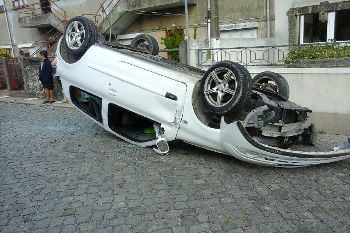 Um acidente sobressaltou a pacata rua António Gonçalves Casanova, em Beiriz, no sábado à tarde. Por volta das 13h50, uma mulher que seguia sozinha num veículo ligeiro capotou a meio da rua. Os Bombeiros Voluntários da Póvoa de Varzim fizeram deslocar para o local uma ambulância com dois elementos, que depressa prestaram socorro à vítima. A mulher, de 22 anos, residente em Terroso, sofreu apenas ferimentos ligeiros, mas a fotografia (ao lado) demonstra bem a violência do acidente. A mulher foi transportada ao Hospital da Póvoa de Varzim, de onde já teve alta.