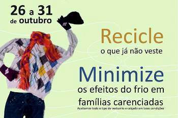 O Lions Lions Clube da Póvoa de Varzim e a delegação local da Cruz Vermelha Portuguesa lançam hoje uma campanha de recolha de roupas usadas para minimizar os efeitos do tempo do Inverno para 97 famílias do concelho que têm confirmadas carências económicas. A Câmara da Póvoa está a colaborar com as instituições presididas por Miguel Sousa Neves e Luísa Tavares Moreira que pretendem, durante toda esta semana, obter vestuário e calçado em boas condições que podem ser entregues nas instalações da Cruz Vermelha, em vários estabelecimentos comerciais e no pavilhão municipal.