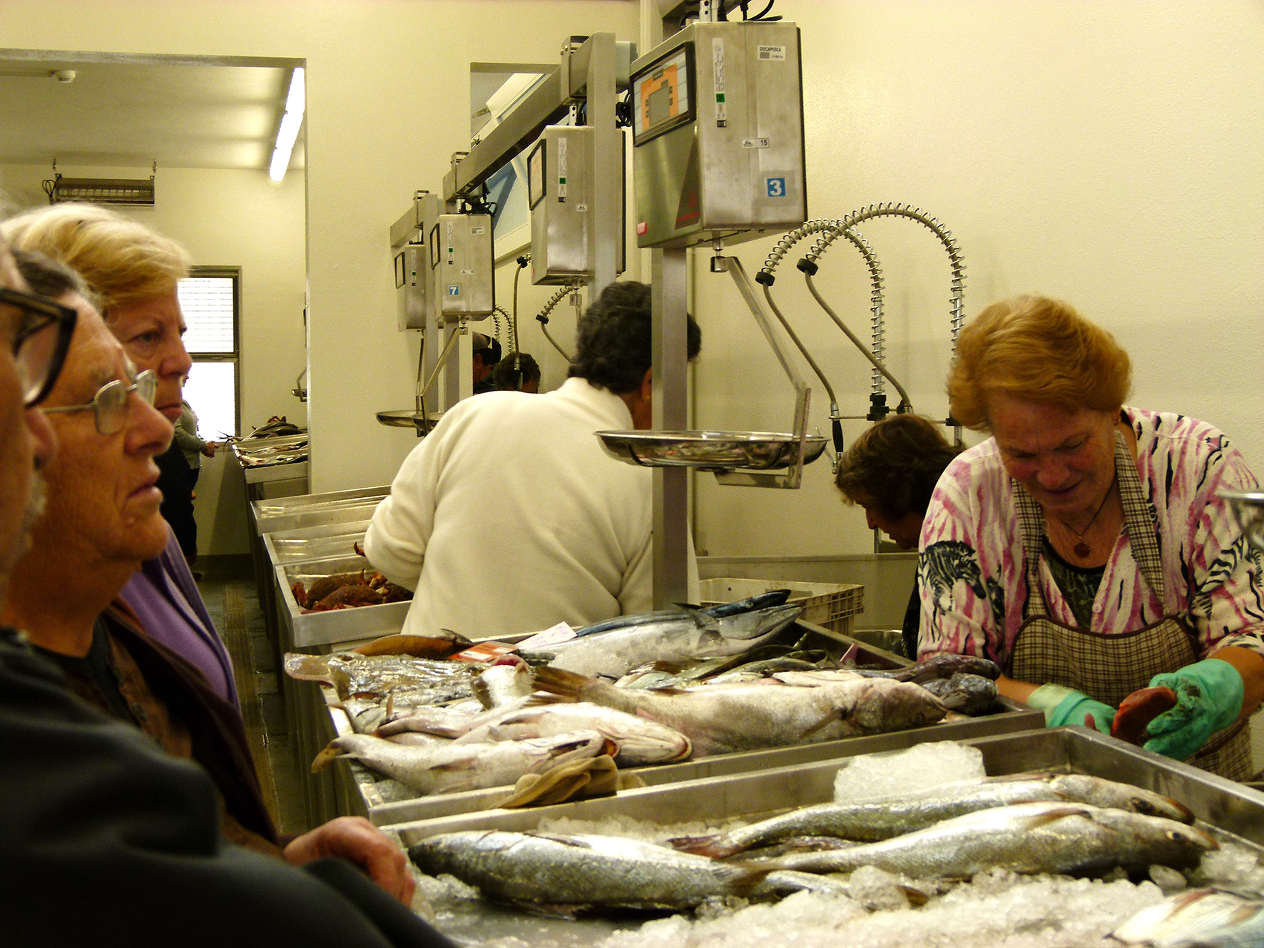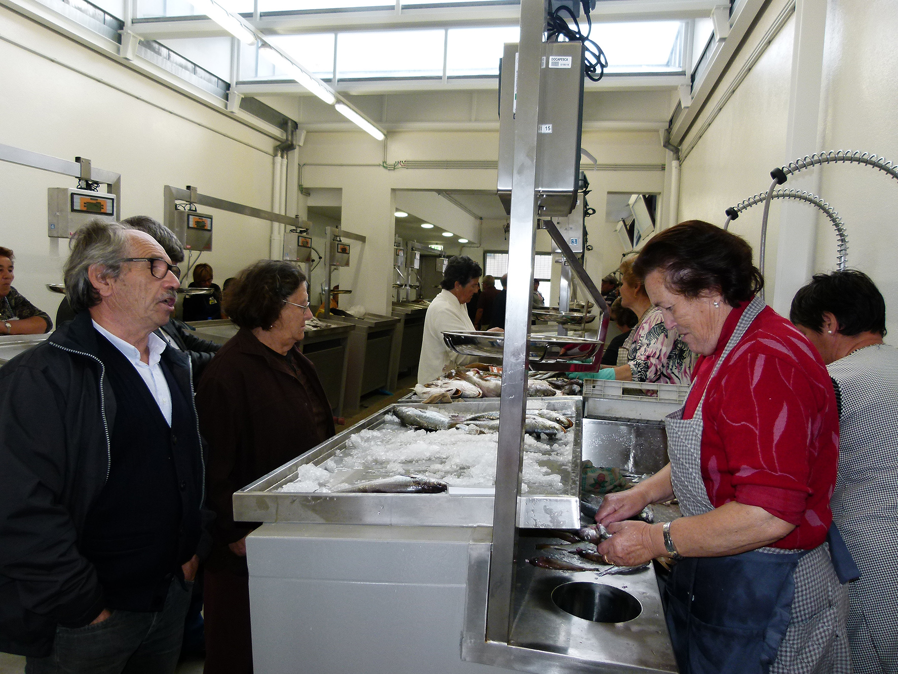 Justina Santos é a mais antiga peixeira ainda em funções. Tem 70 anos. Reconhece que as condições são melhores, mas ainda assim, diz, as bancas são “muito pequenas” e os impostos “são muito mais”. Espera que o novo Mercado do Peixe traga mais clientes e, assim, compense as despesas. Justina recorda-se bem do tempo em que se começou a vender peixe ali, numa “moda” que pegou. Armanda Faria, por outro lado, é a mais nova. Venda ali há três anos, desde que o barco do marido, o “Pedro Tiago”, se mudou para o porto de Vila do Conde. Reconhece que nada se compara às condições que tinham quando vendiam à porta da lota. Filomena Rocha também reconhece as melhorias. Agora é só esperar que venham mais clientes. Carolina Machado compra ali peixe há muitos anos. Agora, diz, está melhor e, Inverno ou Verão, não é preciso estar às compras à chuva, ao vento e ao sol. A lota tem 17 bancas, 13 das quais ocupadas pelas mulheres que ali vendem o peixe dos pequenos barquinhos da pesca local. A partir de agora, e mais do que nunca, Docapesca e autoridades vão apertar o cerco à venda ambulante, tanto na cidade como pelas ruas das Caxinas. As multas aumentaram e podem, agora, chegar aos 1200 euros.