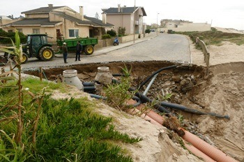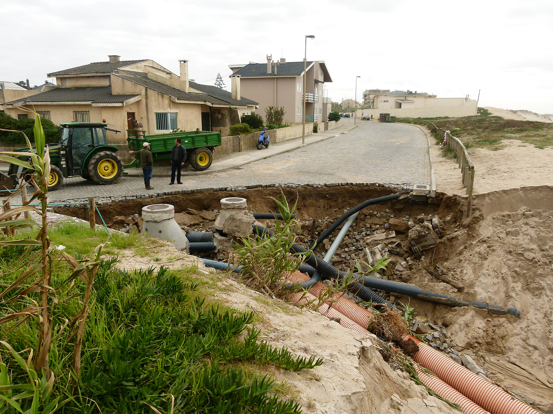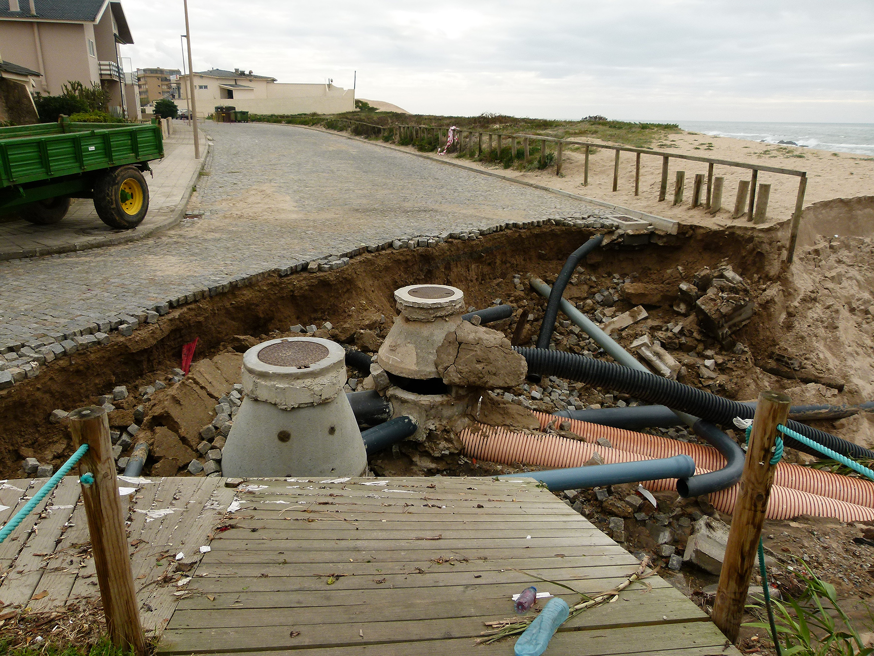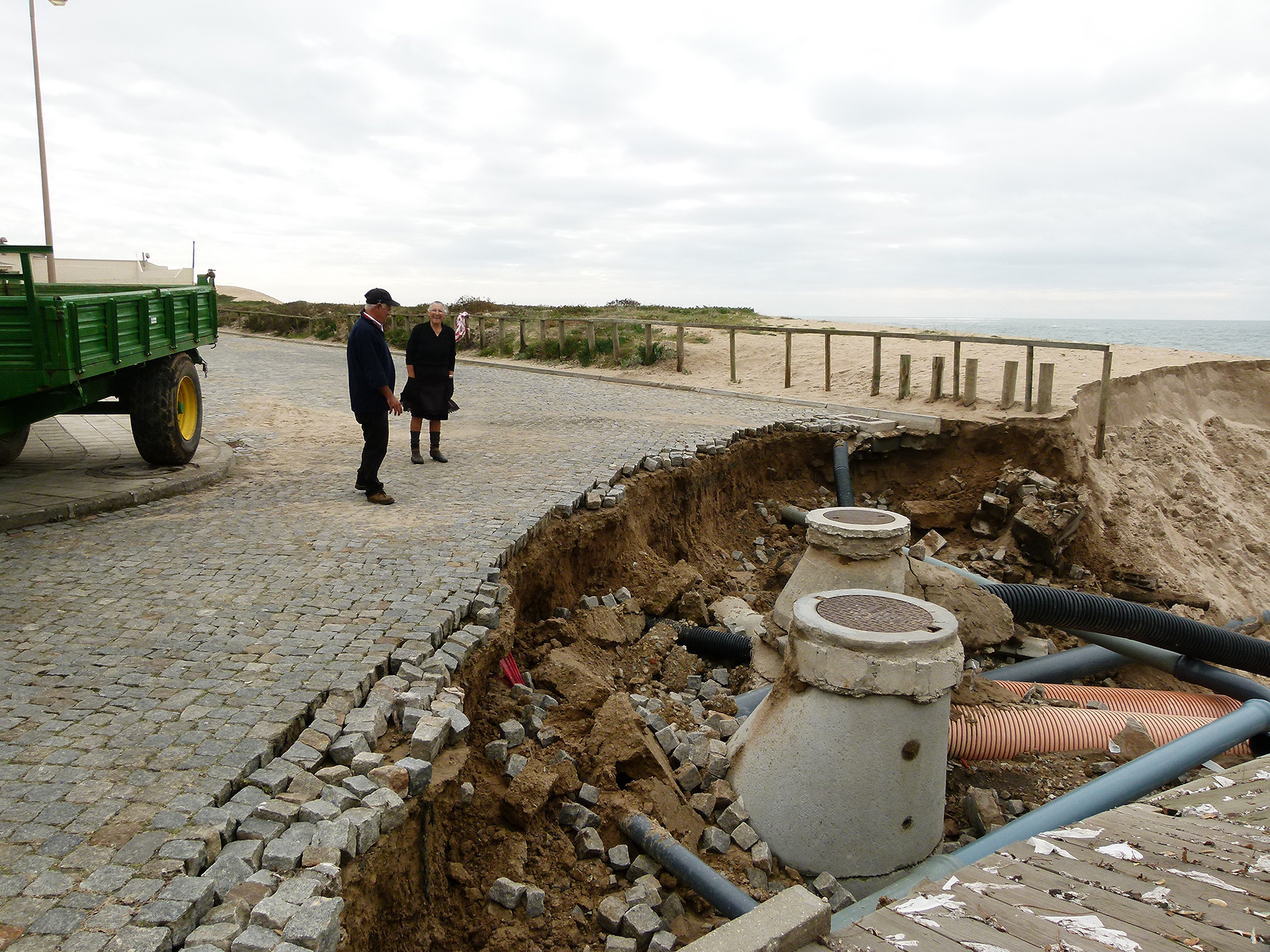 Desabou parte de uma rua perto do mar e de restaurante (com fotogaleria)