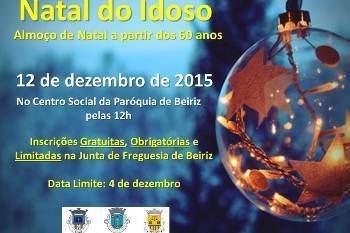 Este sábado, os idosos da freguesia de Beiriz reúnem-se no tradicional Natal do Idoso, no Centro Social da Paróquia de Beiriz. O convívio é gratuito, destina-se a todos os habitantes da freguesia com mais de 60 anos e é, anualmente, oferecido pela União das Freguesias da Póvoa de Varzim, Beiriz e Argivai para celebrar a quadra natalícia.