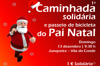 A freguesia da Junqueira, em Vila do Conde, recebe amanhã (domingo), a 1.ª Caminhada Solidária e Passeio de Bicicleta do Pai Natal. Promovida pela Civimountain – sports & nature tours com o apoio da Junta de Freguesia da Junqueira, a caminhada vai reverter integralmente para o serviço de Pediatria do Instituto Português de Oncologia (IPO) do Porto. A caminhada tem seis quilómetros e o passeio de bicicleta 15. A inscrição custa 1 euro. A partida é às 9h30, junto à Escola EB 2,3 da Junqueira.