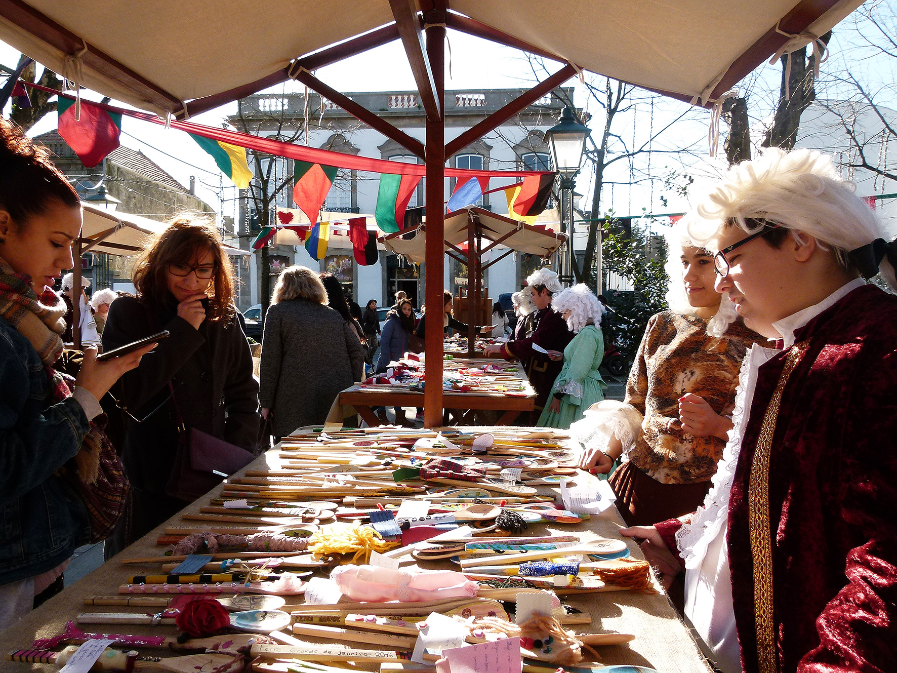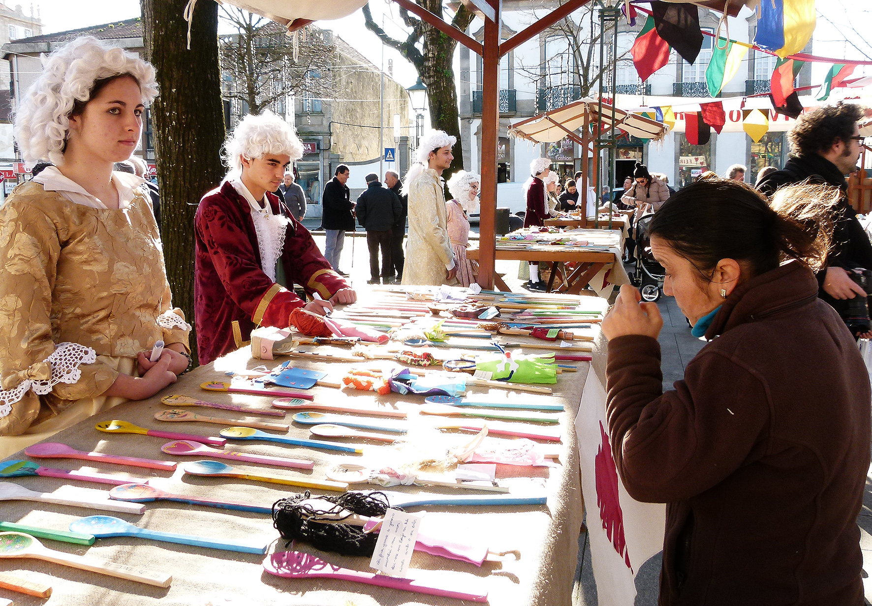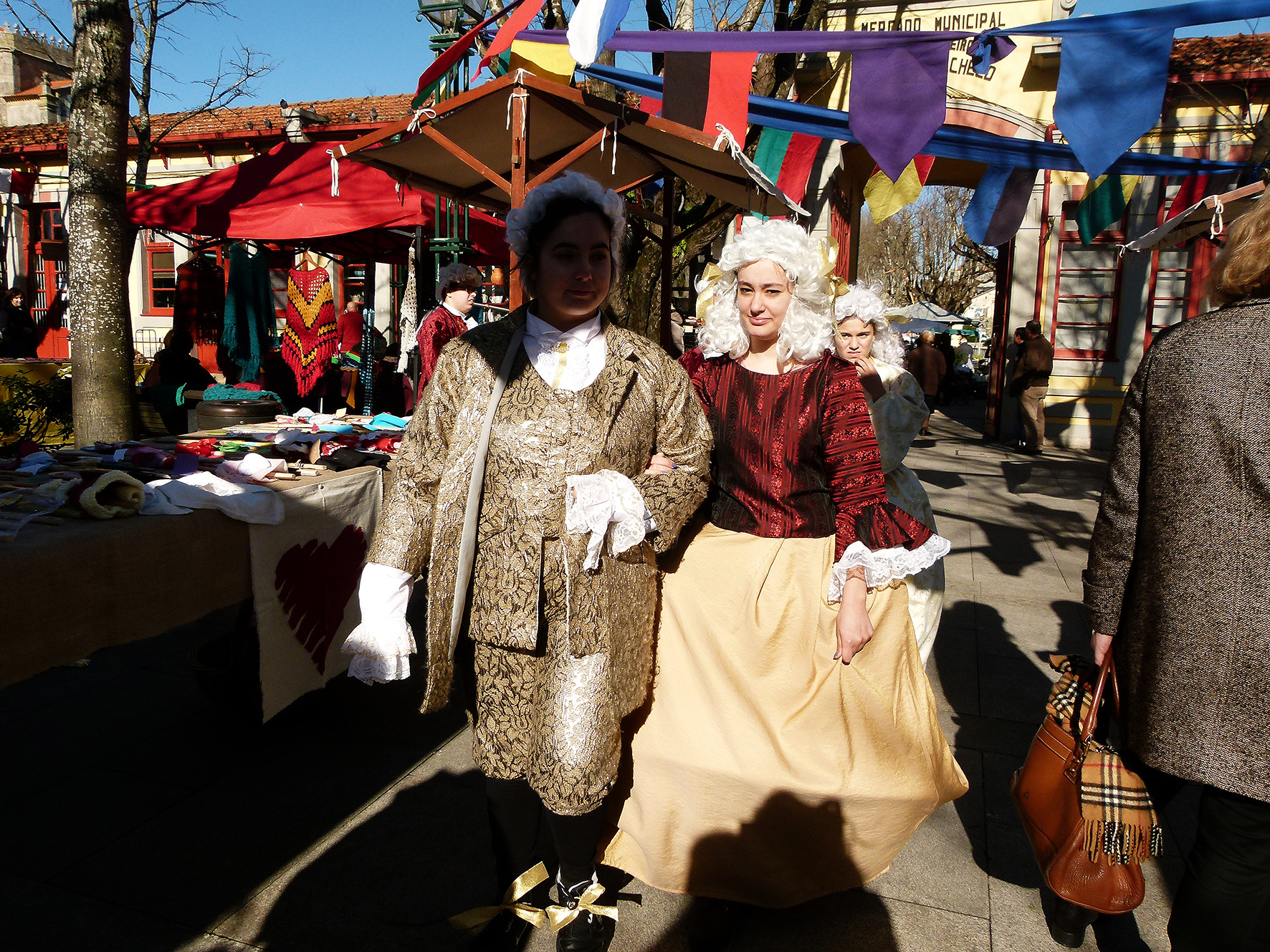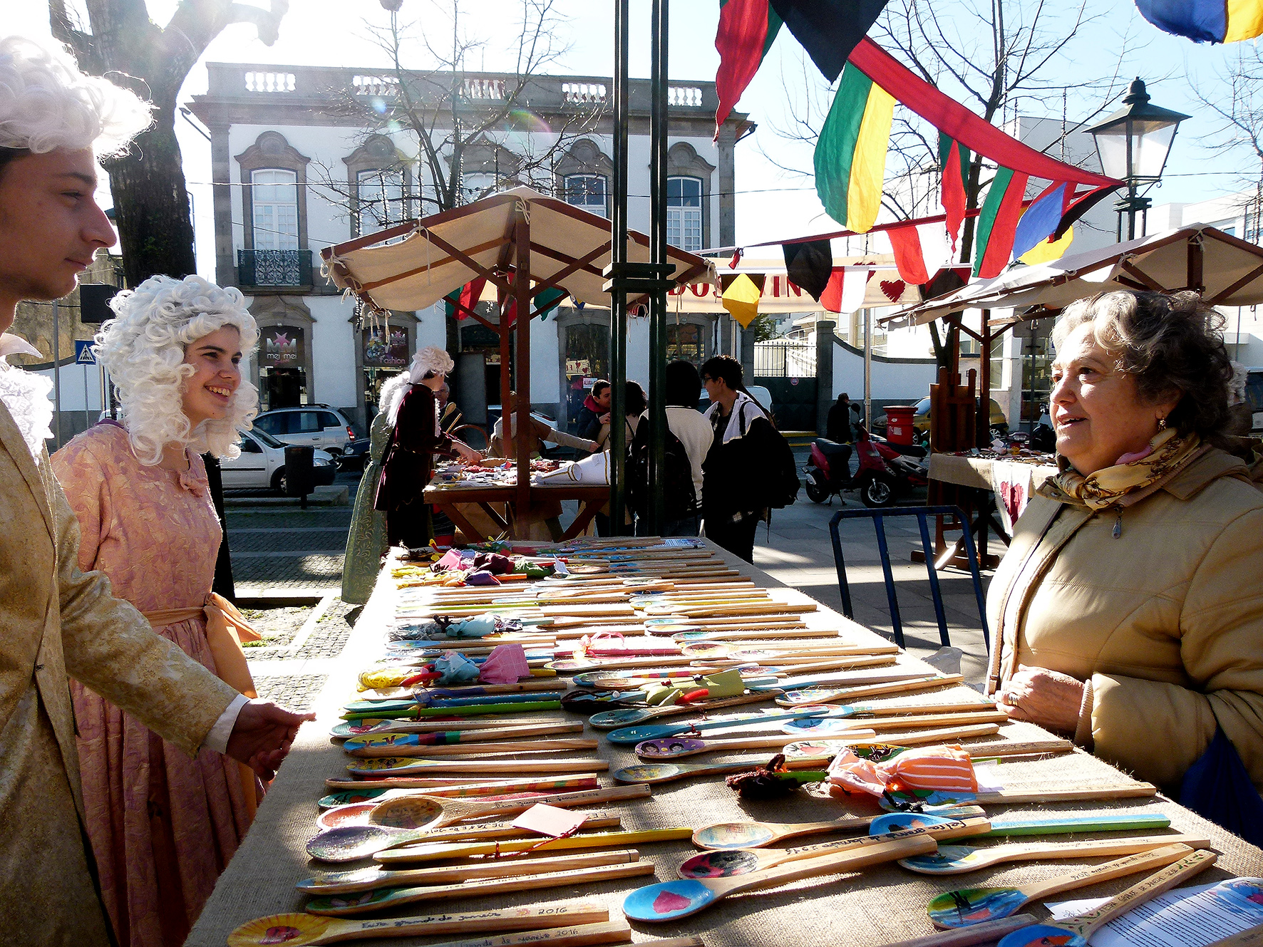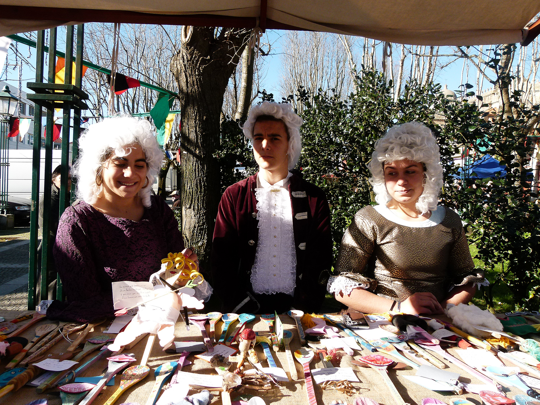 E então Helena? Como se sentem os jovens nos trajes do século XVIII? Sara explica que a feira foi muito útil para perceber melhor a época. Quem por ali passa sorri, faz perguntas, tira fotografias.