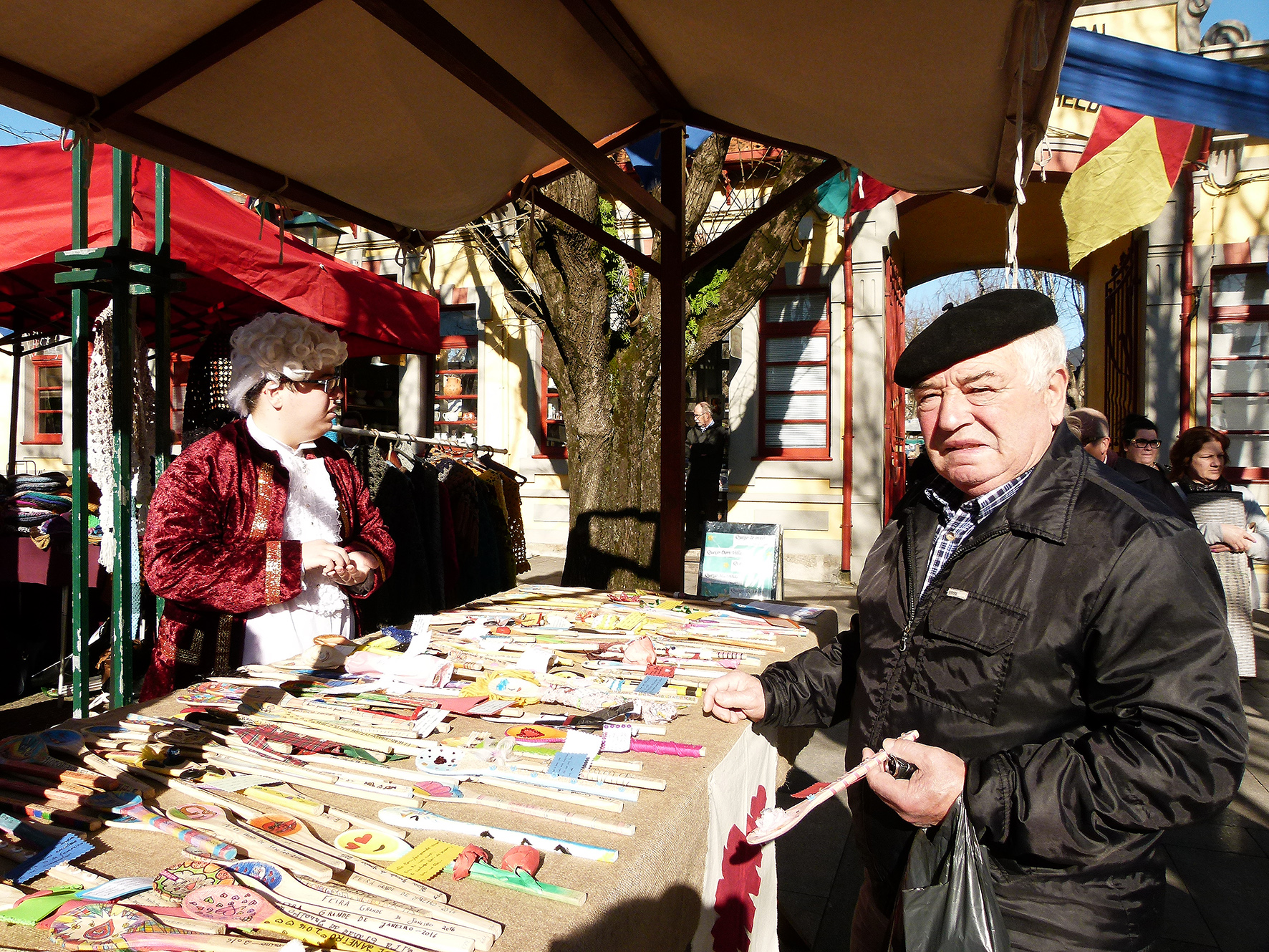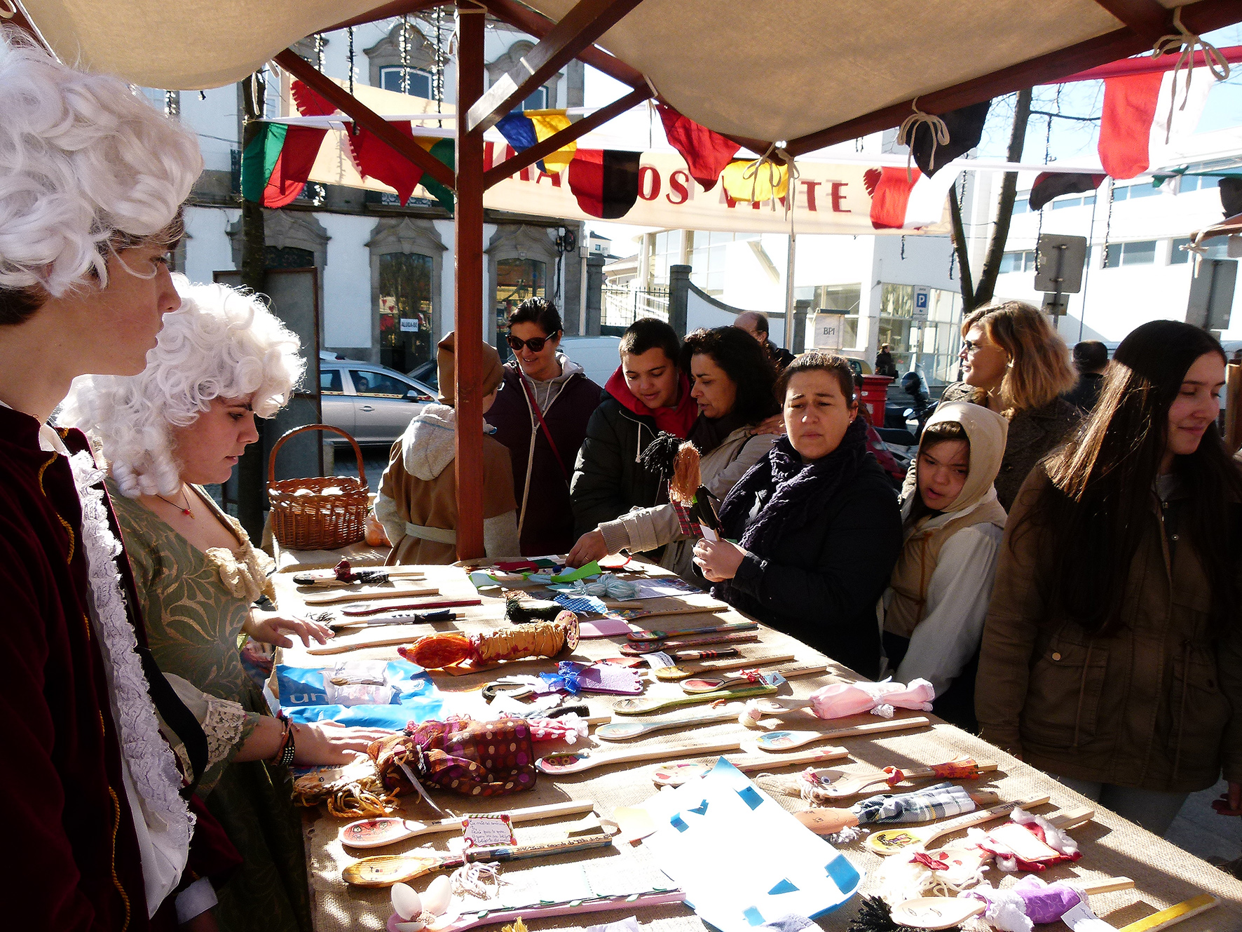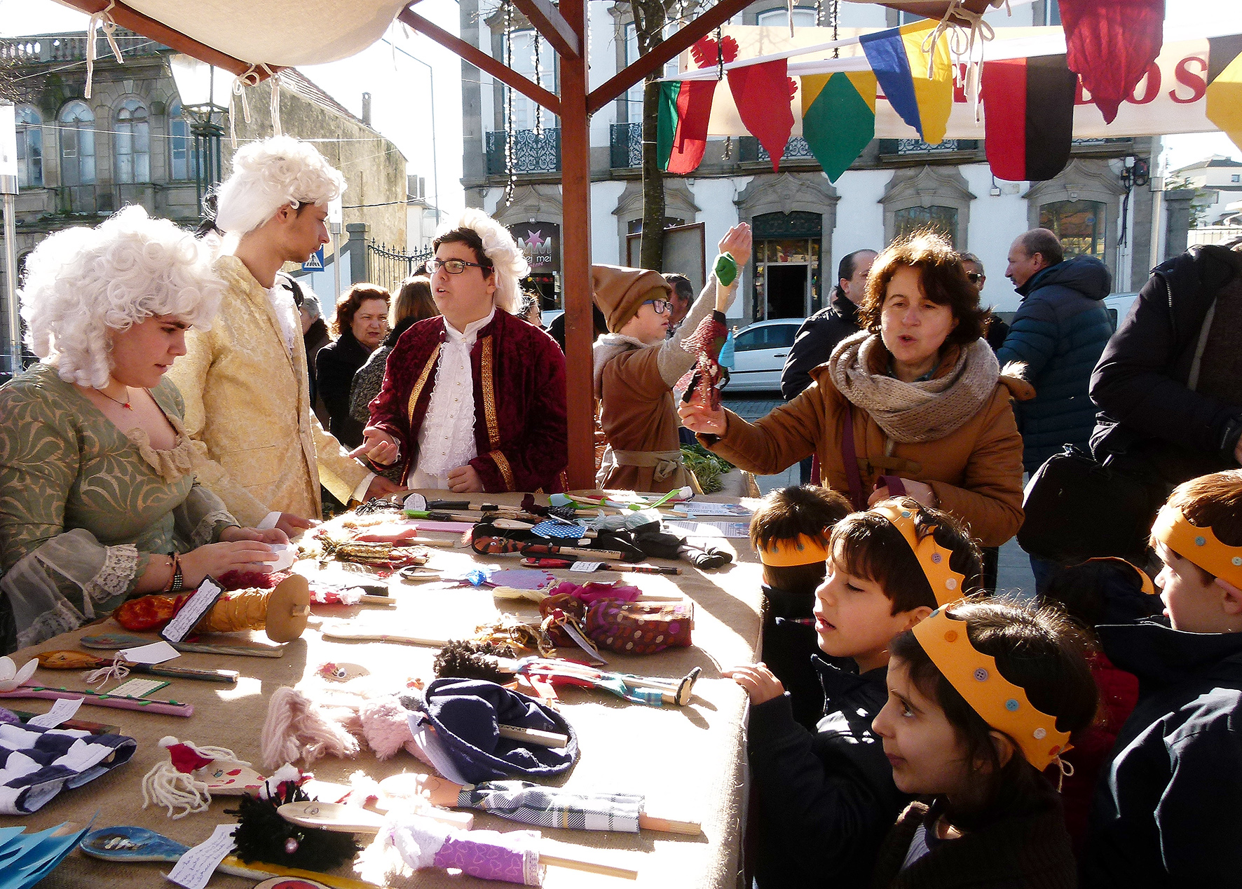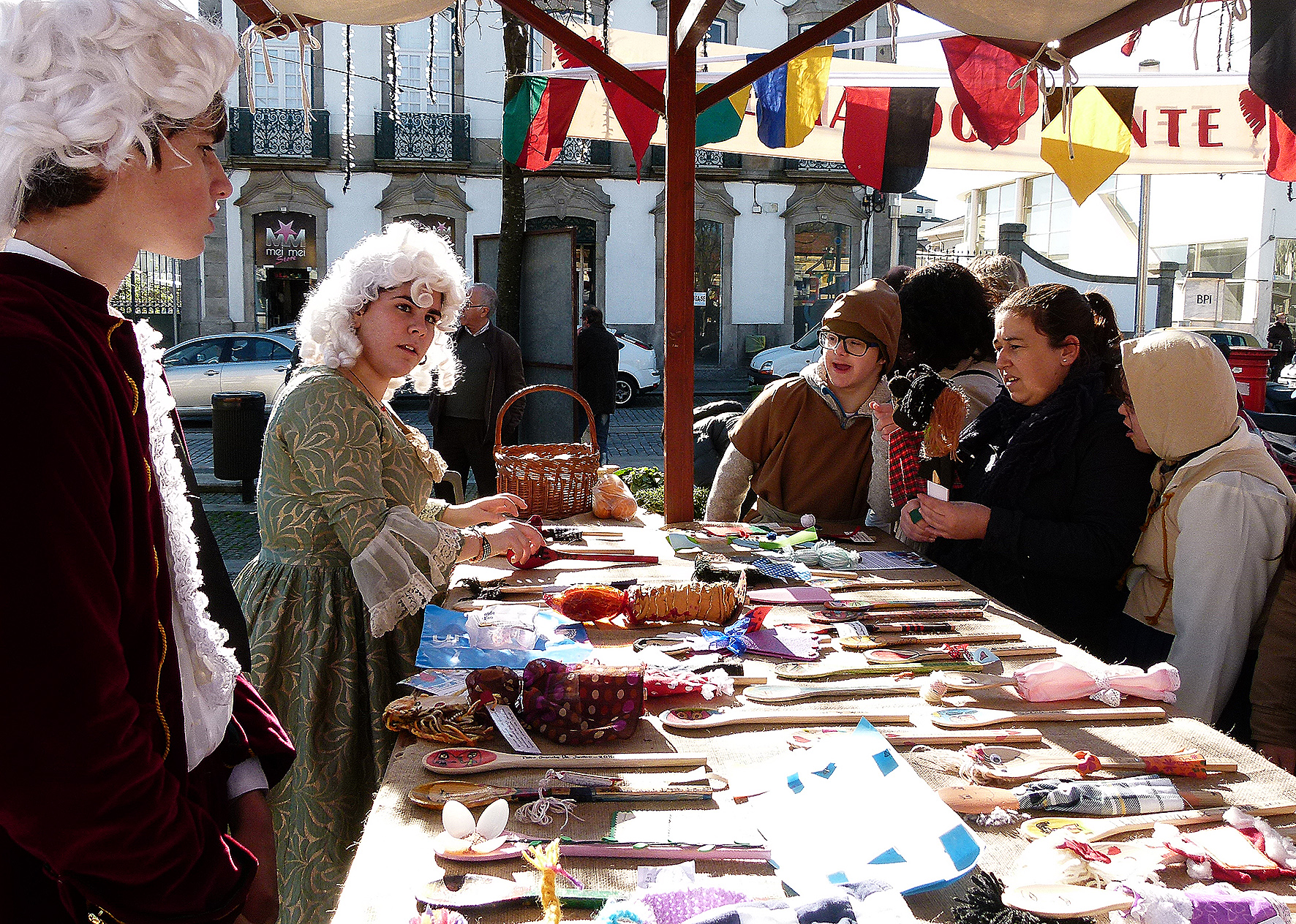 E então Helena? Como se sentem os jovens nos trajes do século XVIII? Sara explica que a feira foi muito útil para perceber melhor a época. Quem por ali passa sorri, faz perguntas, tira fotografias.