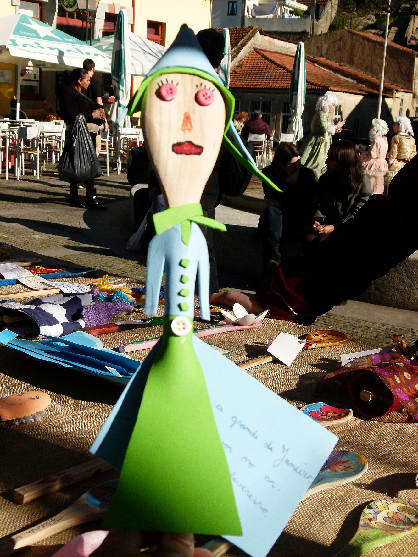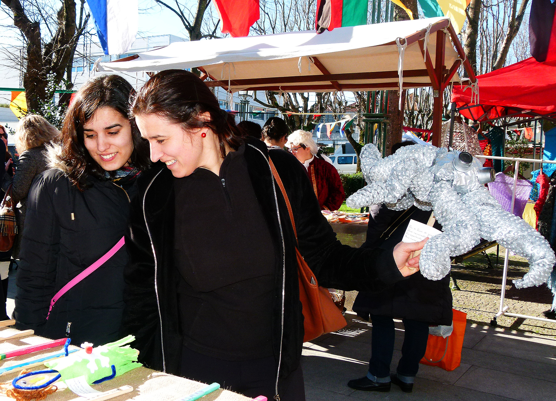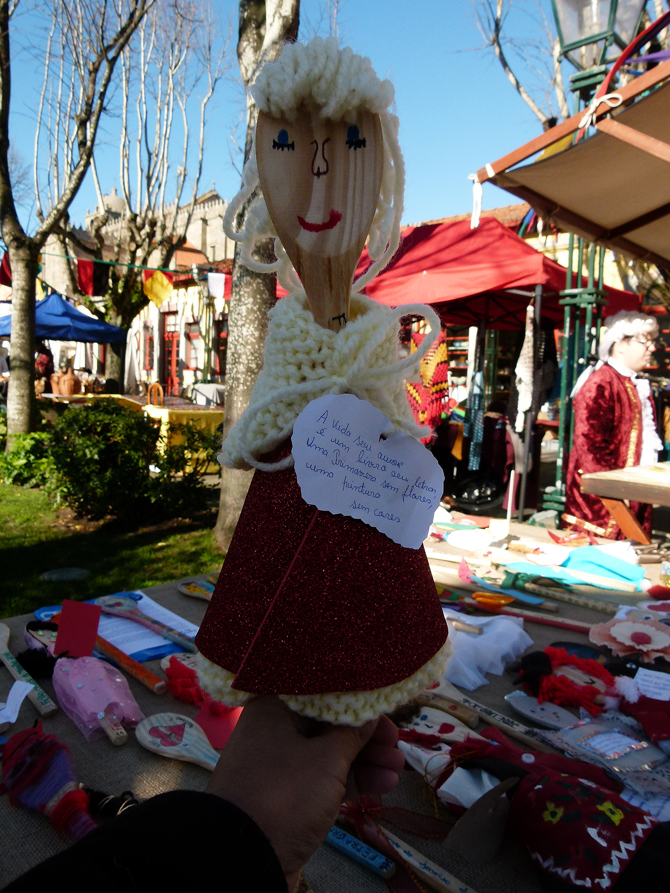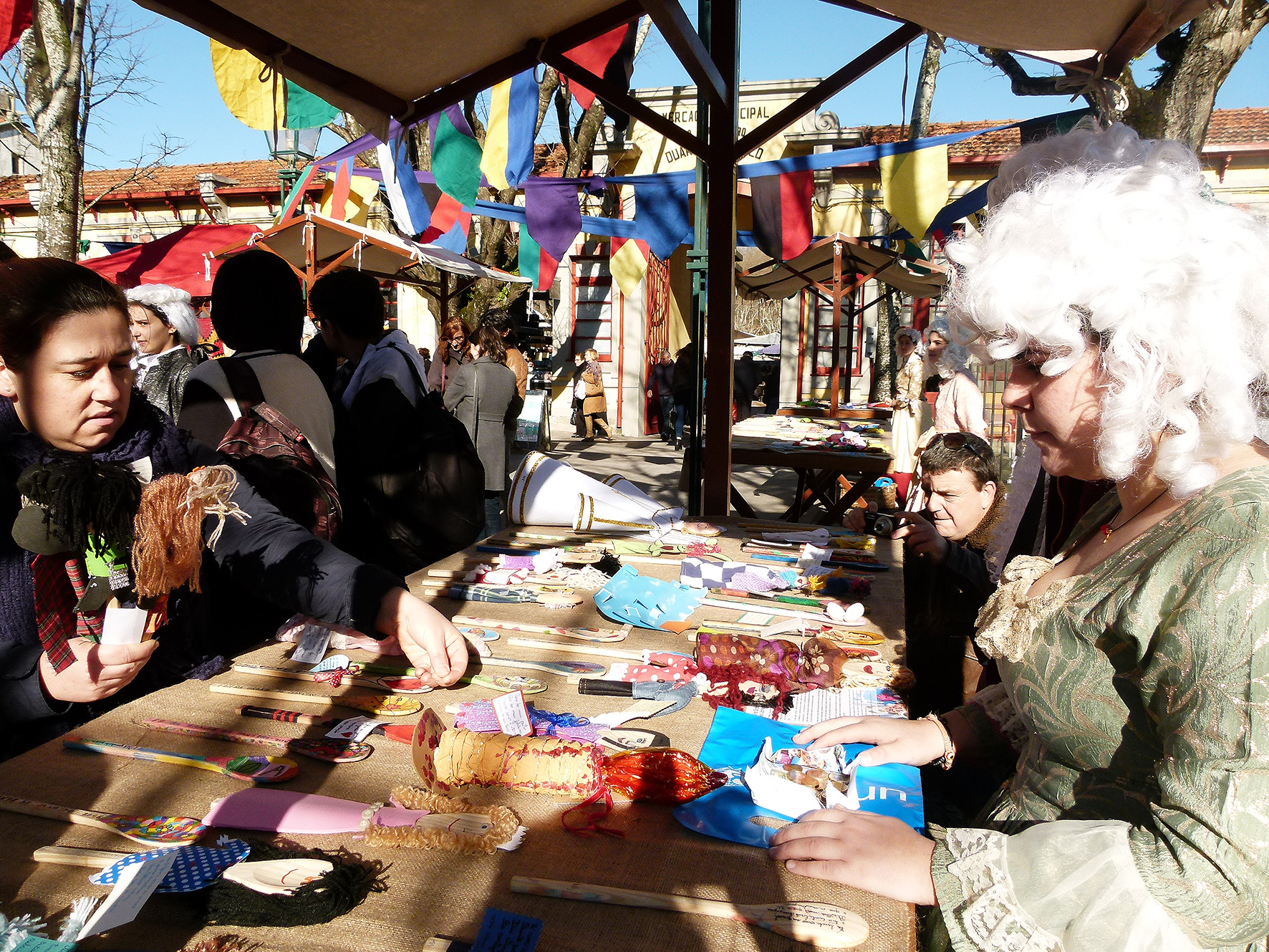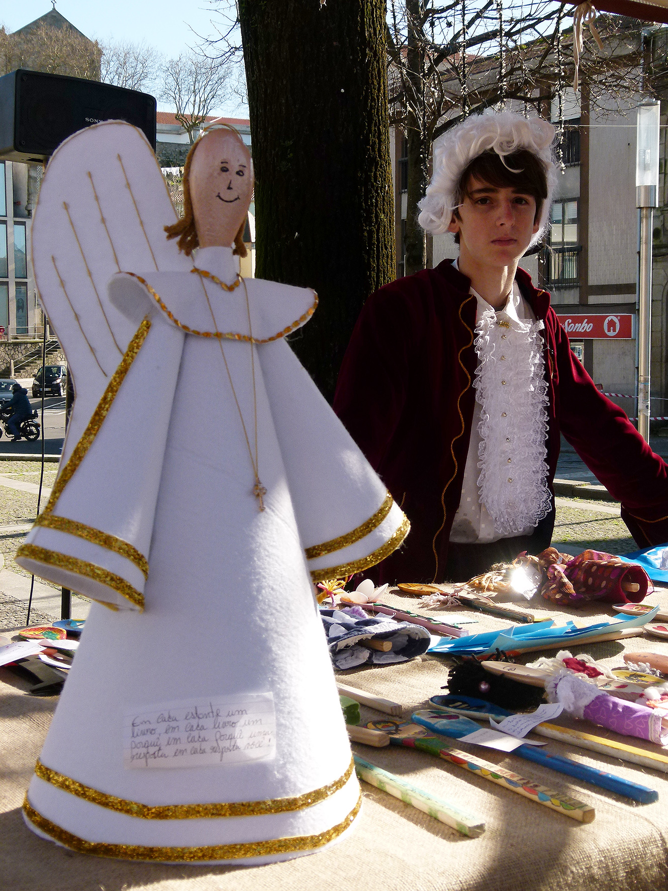 E então Helena? Como se sentem os jovens nos trajes do século XVIII? Sara explica que a feira foi muito útil para perceber melhor a época. Quem por ali passa sorri, faz perguntas, tira fotografias.