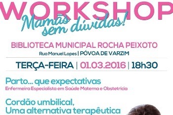 A Biblioteca Municipal vai acolher, hoje (terça-feira), a partir das 18h30, o workshop “Mamãs sem Dúvidas”. A oficina é destinada a futuros pais e abordará os seguintes temas: “Parto… que expectativas” e “Cordão umbilical, uma alternativa terapêutica”. A participação no workshop é gratuita, mas a inscrição é obrigatória. Pode ser feita através do telefone 212 744 021 por um endereço de correio eletrónico que pode conhecer na nossa página na Internet ou do e-mail Este endereço de email está protegido contra piratas. Necessita ativar o JavaScript para o visualizar.