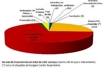 Os Bombeiros Voluntários da Póvoa de Varzim terminaram o mês de fevereiro (mais curto do ano) com 1465 ocorrências, menos 106 do que em janeiro. Destas, 15 referem-se a acidentes e nove a incêndios: fogos urbanos, florestais, em transportes e detritos. A corporação poveira foi também chamada a prestar 353 socorros pré-hospitalares, incluindo dez casos de paragens cardiorrespiratórias. Os dados foram revelados pelo comando e fazem parte de uma nova política de comunicação de informação à população. Além das situações anteriores, a rubrica referente ao transporte de doentes é a mais comum, ultrapassando novamente o milhar de casos. Outros números a reter no mês passado: mais de mais de três mil pessoas transportadas, 61 mil quilómetros percorridos e 1500 utilizações dos veículos da corporação.