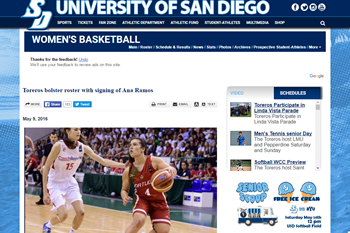 Mais uma poveira a caminho dos Estados Unidos. Depois de Diogo Brito, agora é a vez de Ana Ramos prosseguir a carreira do outro lado do Atlântico. A basquetebolista do Desportivo e da seleção nacional sub-17 vai representar a Universidade de San Diego na temporada 2016-2017. Segundo a instituição norte-americana, a experiência internacional da melhor jogadora europeia de sub-16 será uma mais-valia para o plantel da equipa universitária.