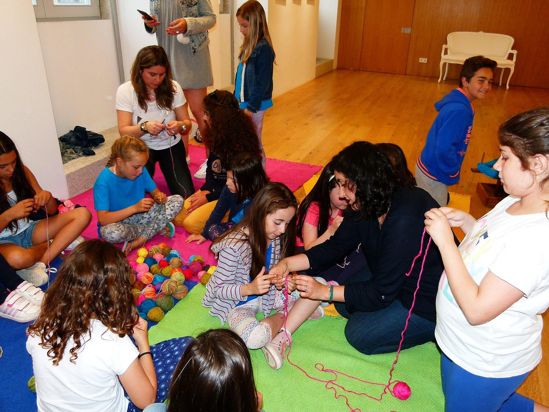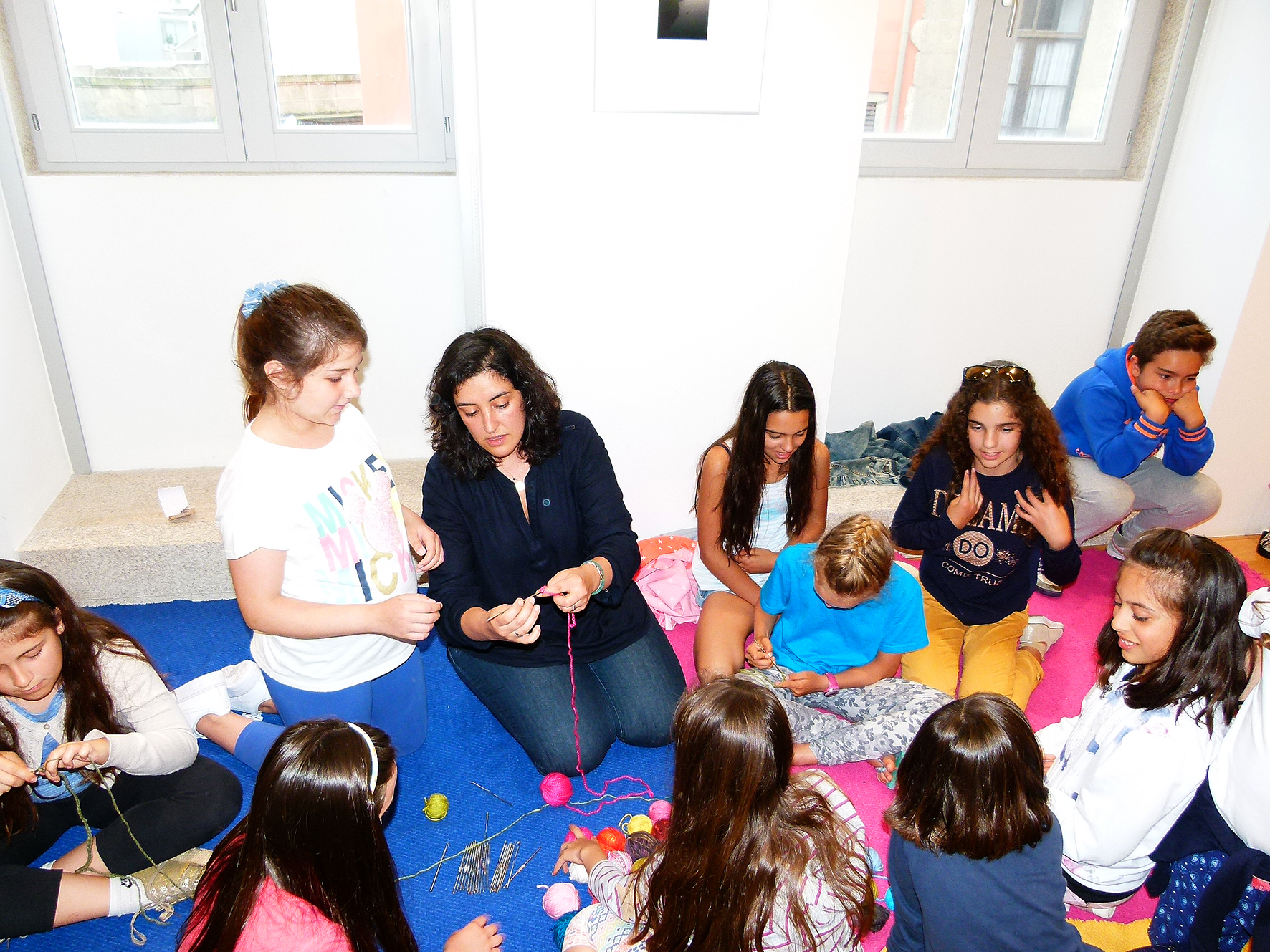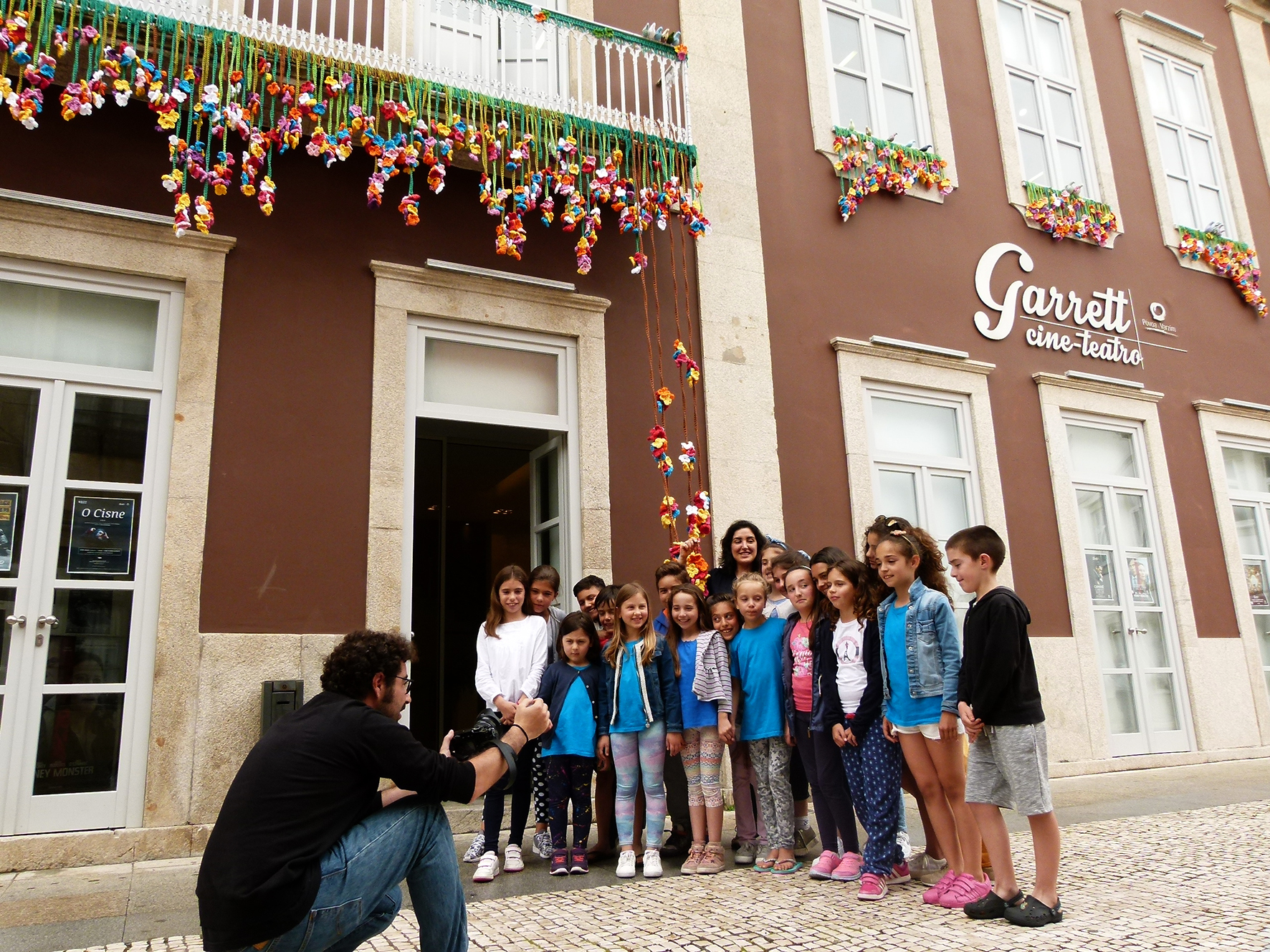 Hoje, voltou ao Garrett para uma oficina especial: ensinou a pequenada do Centro de Estudos "Quiz" a fazer flores, as mesmas com que decorou a fachada do Cine-Teatro. Rodrigo até é rapaz, mas ainda assim adorou a ideia. Maria Beatriz já sabia fazer croché. Ensinou-lhe a mãe e a menina, com apenas 10 anos, garante que dá para fazer coisas muito giras. A outra Beatriz achou o projeto muito giro e, com ajuda, até acredita que também seria capaz.