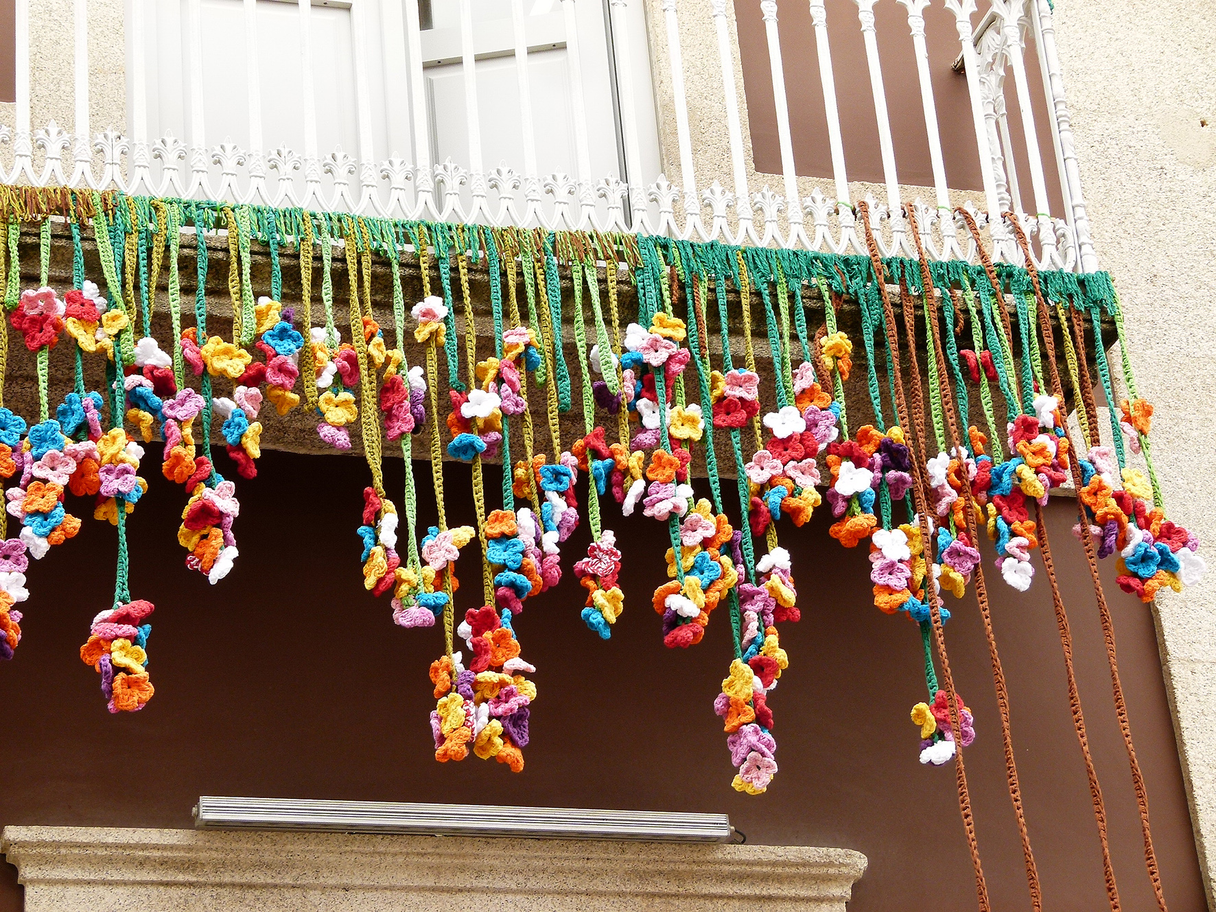 São 2500 flores em croché que, por estes dias, decoram as varandas e janelas da fachada do Cine-Teatro Garrett. A instalação de Lara Mafalda assinala o 2.º aniversário da reabertura ao público da principal sala de espetáculos da cidade. A ideia começou a ganhar forma no início de Maio, depois de Lara Mafalda ter decidido vestir em croché os mecos na curva da rua Santos Minhos, junto ao Cine-Teatro. Em cerca de cinco semanas, Lara Mafalda, que tem no croché um hobby que leva muito a sério, pôs de pé o projeto.