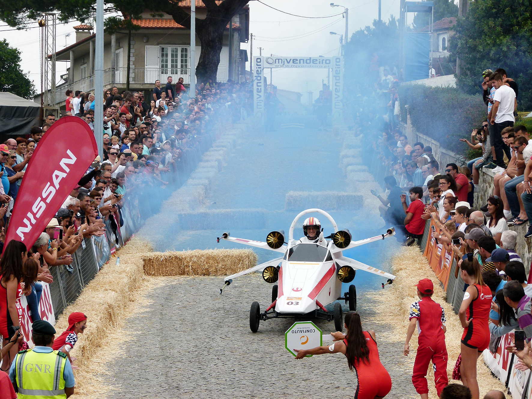 Terminou, ontem, com a Grande Descida de Carros Artesanais, mais uma edição do Laundos em Movimento. Do lado da organização, ainda na pista, Luís Ramos falou à Onda Viva sobre os impactos do novo modelo testado este ano: uma pista com mais paragens, mais interação com o público e menos velocidade. O evento arrancou na sexta-feira com uma noite de "stand up comedy" (comédia), a que se seguiu, no sábado, um encontro de clássicos e, à noite, a prova de downhill, que, este ano, passou a fazer parte do campeonato nacional. Domingo, foi dia da corrida mais louca do mundo, que tem levado a Laundos, todos os anos, milhares de pessoas. Ontem não foi exceção. Laundos encheu-se de gente para ver: vieram os super-heróis, os caça fantasmas, dinossauros e soldados da guerra das estrelas, uma casa a voar, o Astérix e o Obélix e até o Elvis disse presente. Em Laundos, por esta altura, são três dias de festa, mas sem esquecer o objetivo maior do evento: angariar fundos para a construção da nova sede dos escuteiros. Zélia Silva, a chefe do Agrupamento n.º 570, de S. Miguel de Laúndos, explica que este é um sonho que os escuteiros da freguesia há muito perseguem. Neste momento, continuou a contar, os escuteiros estão numa sala cedida pela Junta de Freguesia de Laundos, onde nem sequer têm um espaço destinado a cada grupo, de acordo com as faixas etárias. O projeto está a ser feito, as iniciativas têm corrido bem e – entre o Laundos em Movimento, o Espaço Ar de Rock e as iniciativas dos escuteiros – já foram angariados 50 mil euros, pelo que tudo indica, explica Zélia Silva, que vai ser possível começar as obras dentro de dois anos. Quando à Descida de Carros Artesanais, “Up: Altamente” foi o grande vencedor: o carro-casa voadora da família Ramos foi o mais votado pelo público através do facebook e foi também o escolhido pelo júri, que, este ano, integrava a atriz Sofia Escobar. Astérix e Obélix viajaram no carro eleito como o mais ecológico. Ainda na escolha do júri, em 2.º lugar ficou o carro do “Star Wars”, em 3.º o dinossauro do Jurassic Park, em 4.º a equipa Caça-Fantasmas e em 5.º Astérix e Obélix.