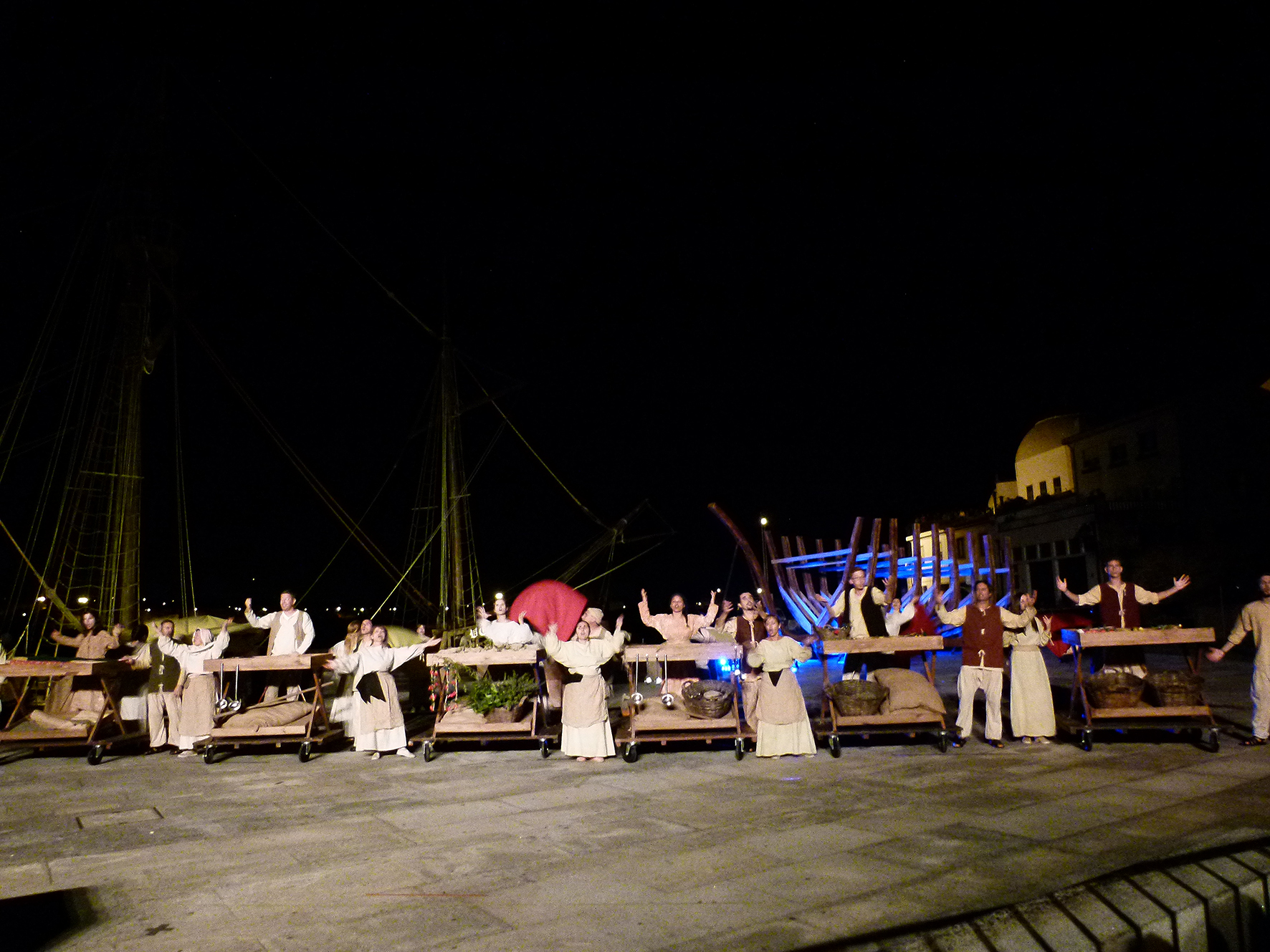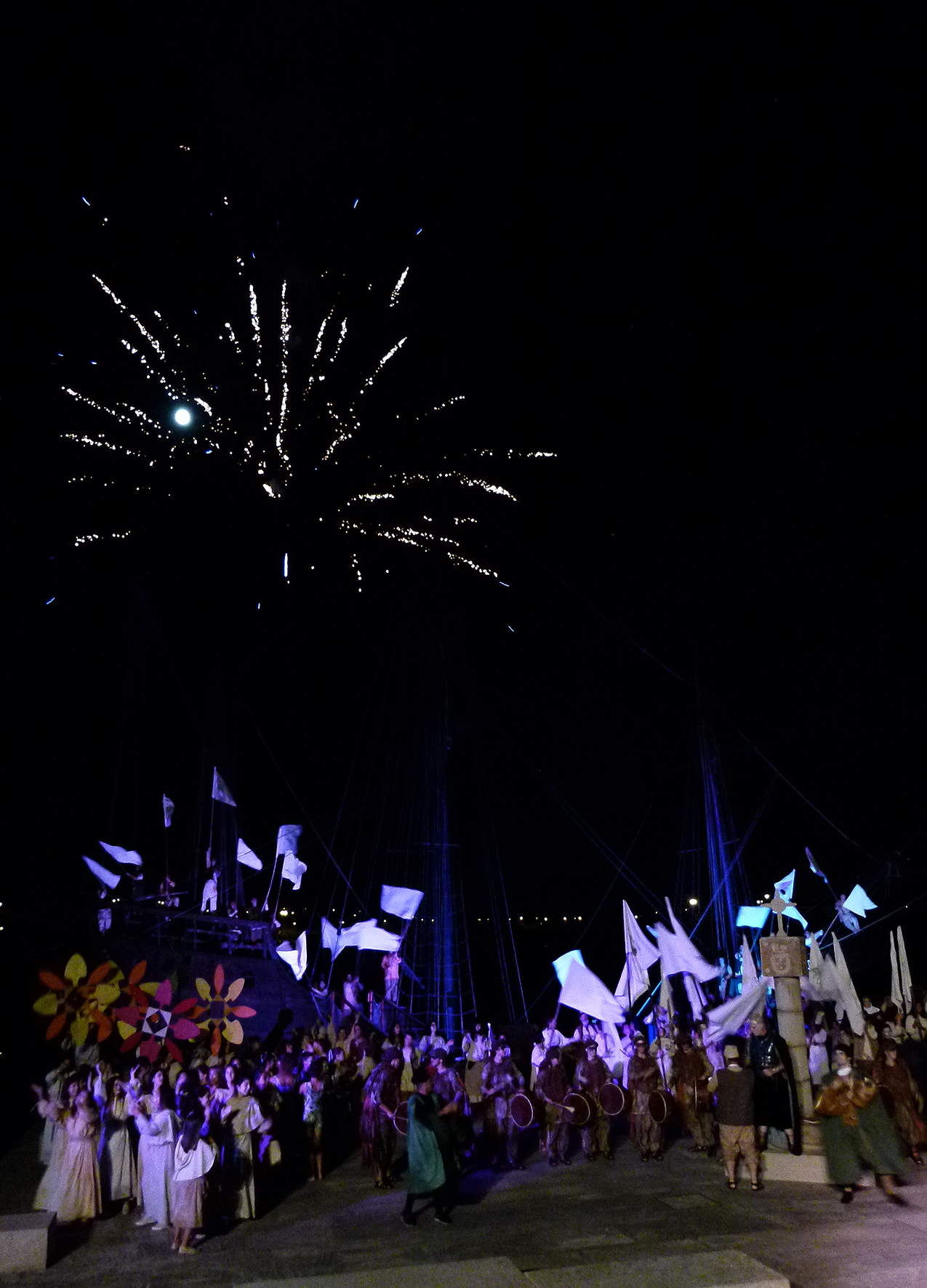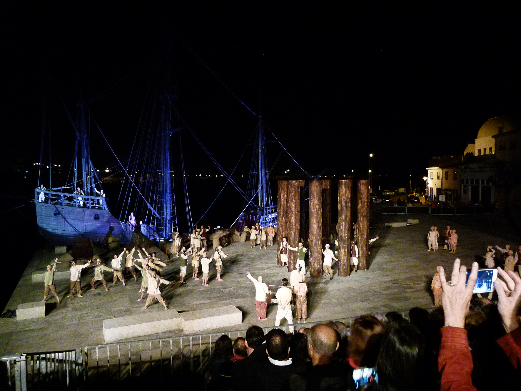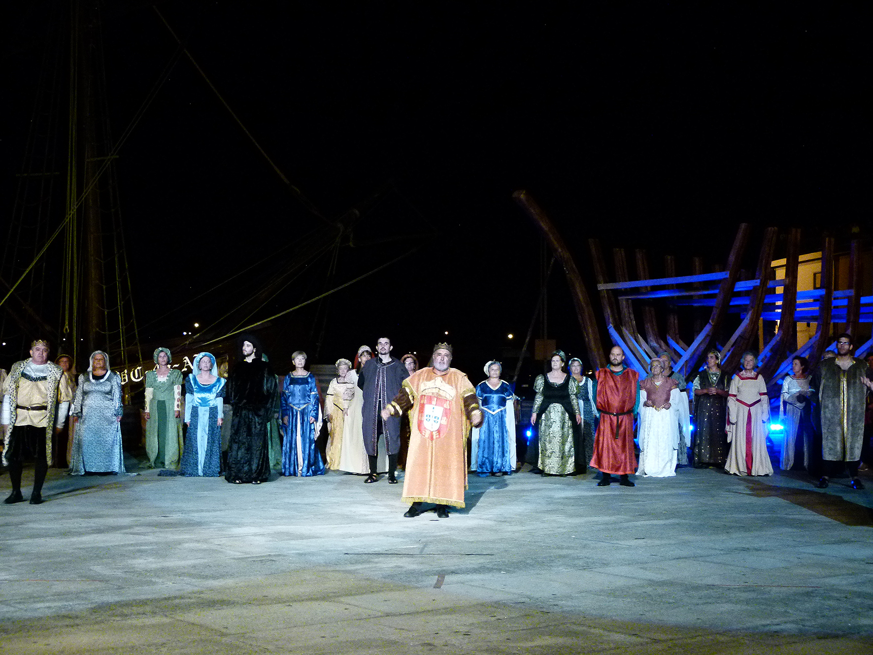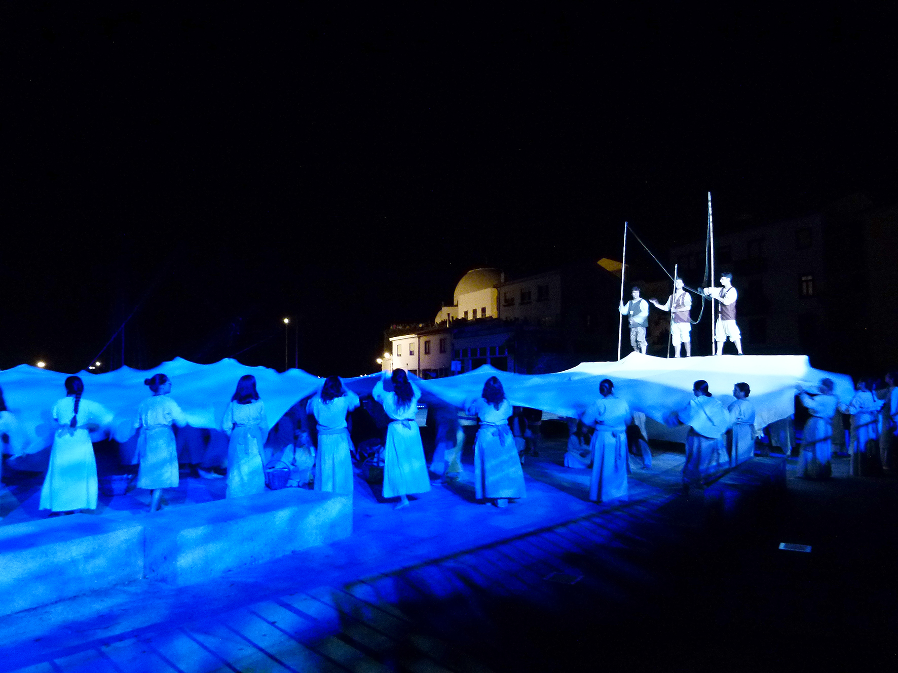 Estreou, ontem, em Vila do Conde, com casa completamente lotada, o espetáculo de teatro de rua “Um Porto para o Mundo”. Foram 1200 os que assistiram à 2.ª edição do maior teatro musical de rua do país, uma co-produção da Câmara de Vila do Conde e da Lafontana – Formas Animadas, que, utilizando o cenário natural do Cais da Alfândega, conta a história daqueles bravos homens do mar. Está lá a pesca e a alusão aos que o mar levou ao sofrido povo da terra, a construção naval, as trocas comerciais, a fé, a importância do Mosteiro de Santa Clara, os deuses do Olimpo e, claro, os festejos pela atribuição a Vila do Conde, a carta de foral, em 1516.