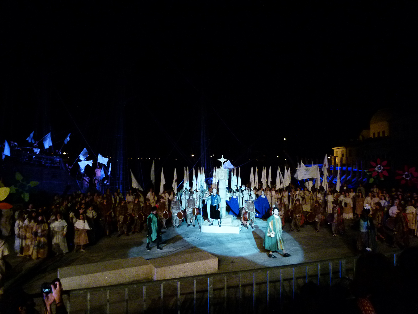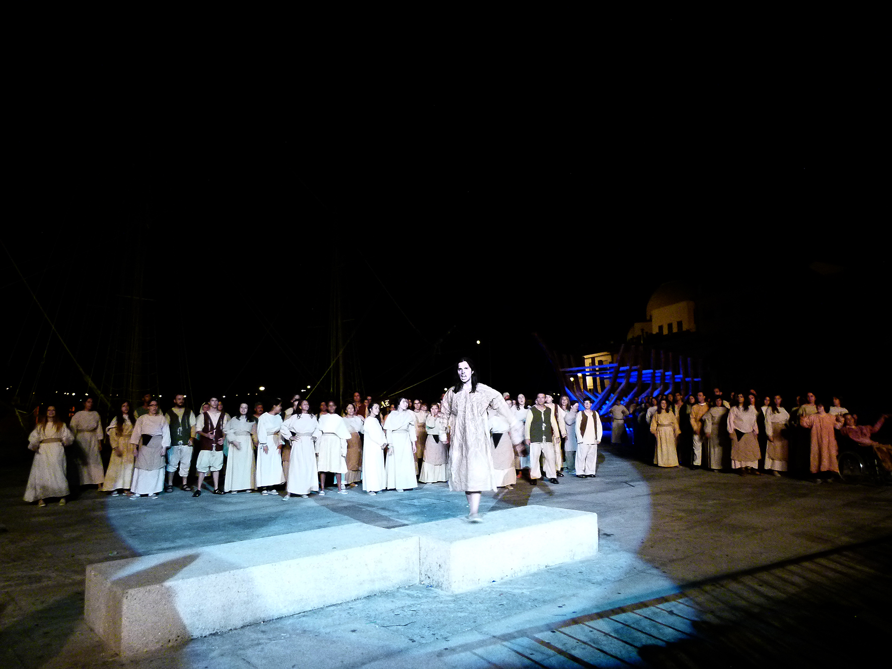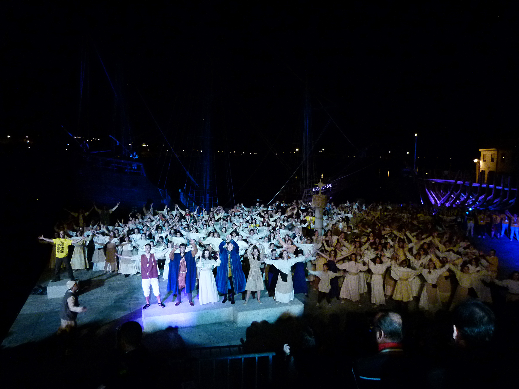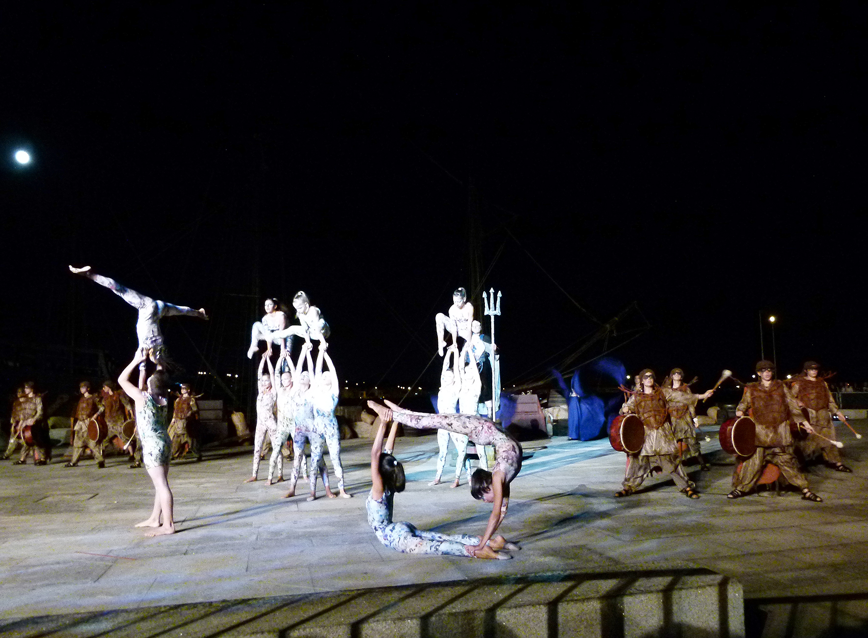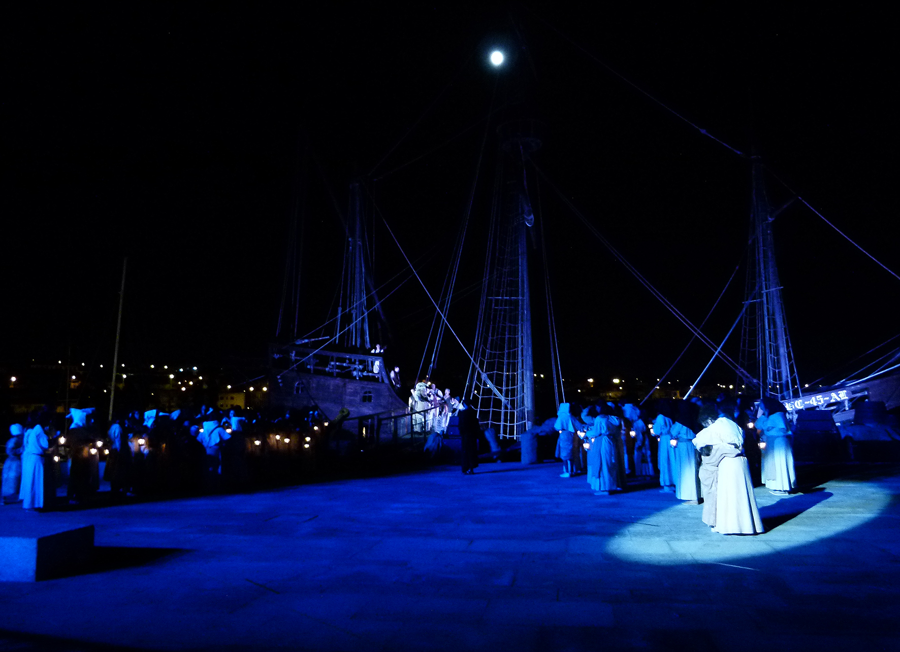 Estreou, ontem, em Vila do Conde, com casa completamente lotada, o espetáculo de teatro de rua “Um Porto para o Mundo”. Foram 1200 os que assistiram à 2.ª edição do maior teatro musical de rua do país, uma co-produção da Câmara de Vila do Conde e da Lafontana – Formas Animadas, que, utilizando o cenário natural do Cais da Alfândega, conta a história daqueles bravos homens do mar. Está lá a pesca e a alusão aos que o mar levou ao sofrido povo da terra, a construção naval, as trocas comerciais, a fé, a importância do Mosteiro de Santa Clara, os deuses do Olimpo e, claro, os festejos pela atribuição a Vila do Conde, a carta de foral, em 1516.